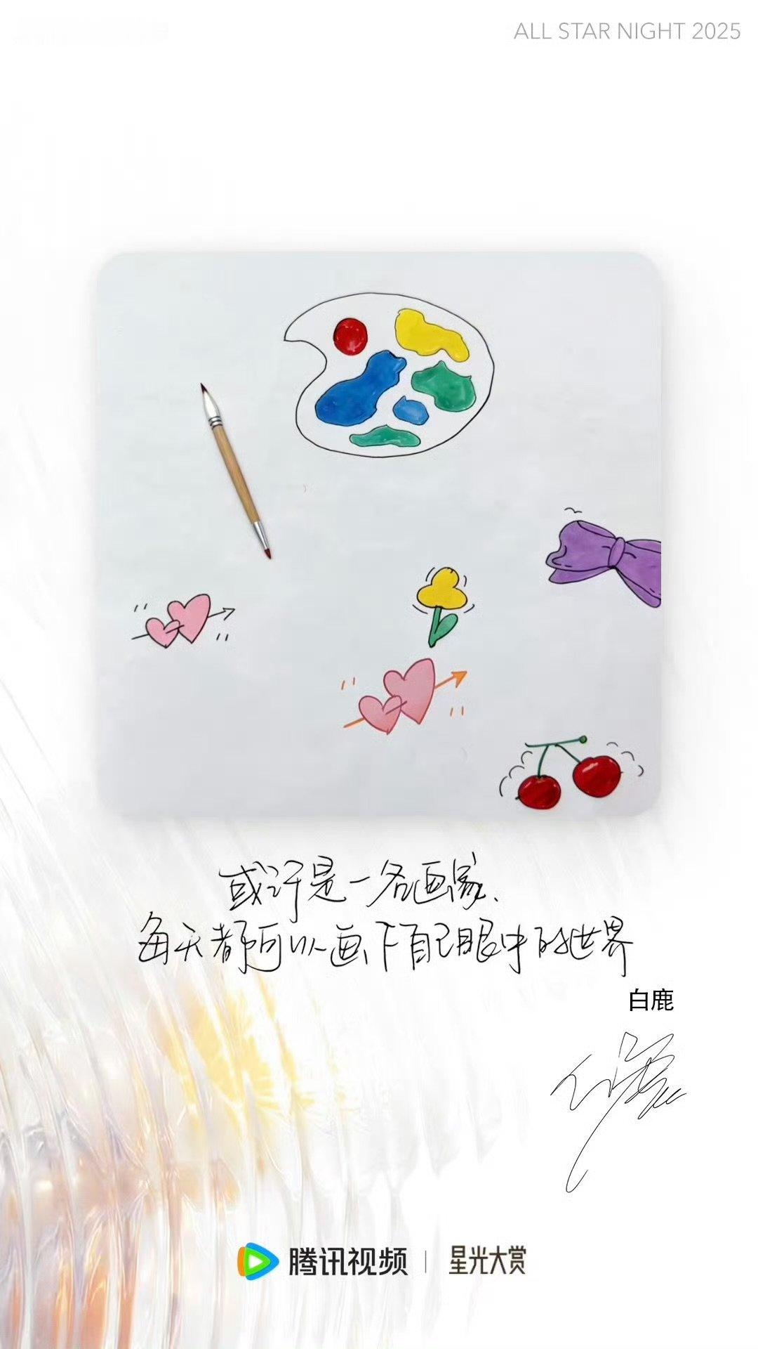 白鹿希望每天都可以画下自己眼中的世界白鹿或许是一名画家是白鹿,也是“画家”,或许每天都可以画下自己眼中的世界。2025年12月21日,中国海口见,和我一起从想象出发,抵达万象纷呈的星光彼岸!腾讯视频星光大赏