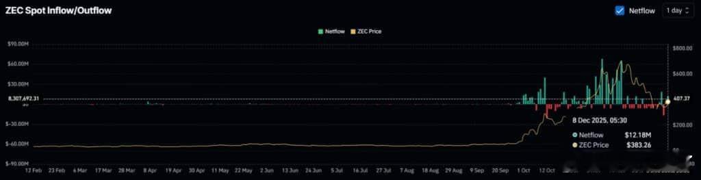 ZEC 日内涨 16%!报 397 美元,交易量暴涨 45% 至 9.65 亿。价格再次冲击 383 美元阻力位,突破就可能打开通往 480 美元的大门,但日线收盘不稳的话,上行动能还需观察。衍生品数据显示多头仓位集中,日内支撑在 366.4 美元,阻力在 407.4 美元。资金流入 1218 万美元,但接近阻力位时获利了结压力仍在,短期行情喜忧参半,走势需谨慎把握。区块链山寨币币圈行情