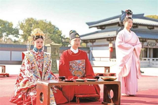 几乎在同一时间,三国城推出的“免费体验中式婚礼”活动吸引了不少人报名。景区将“刘备招亲”这一经典历史场景与新人婚礼相结合,为参与者提供完整的汉婚体验。“让新人完整体验汉婚核心仪式,既让传统文化有了落地的场景,又充分体现了景区沉浸式文旅体验的特色。”三国城景区相关负责人说。