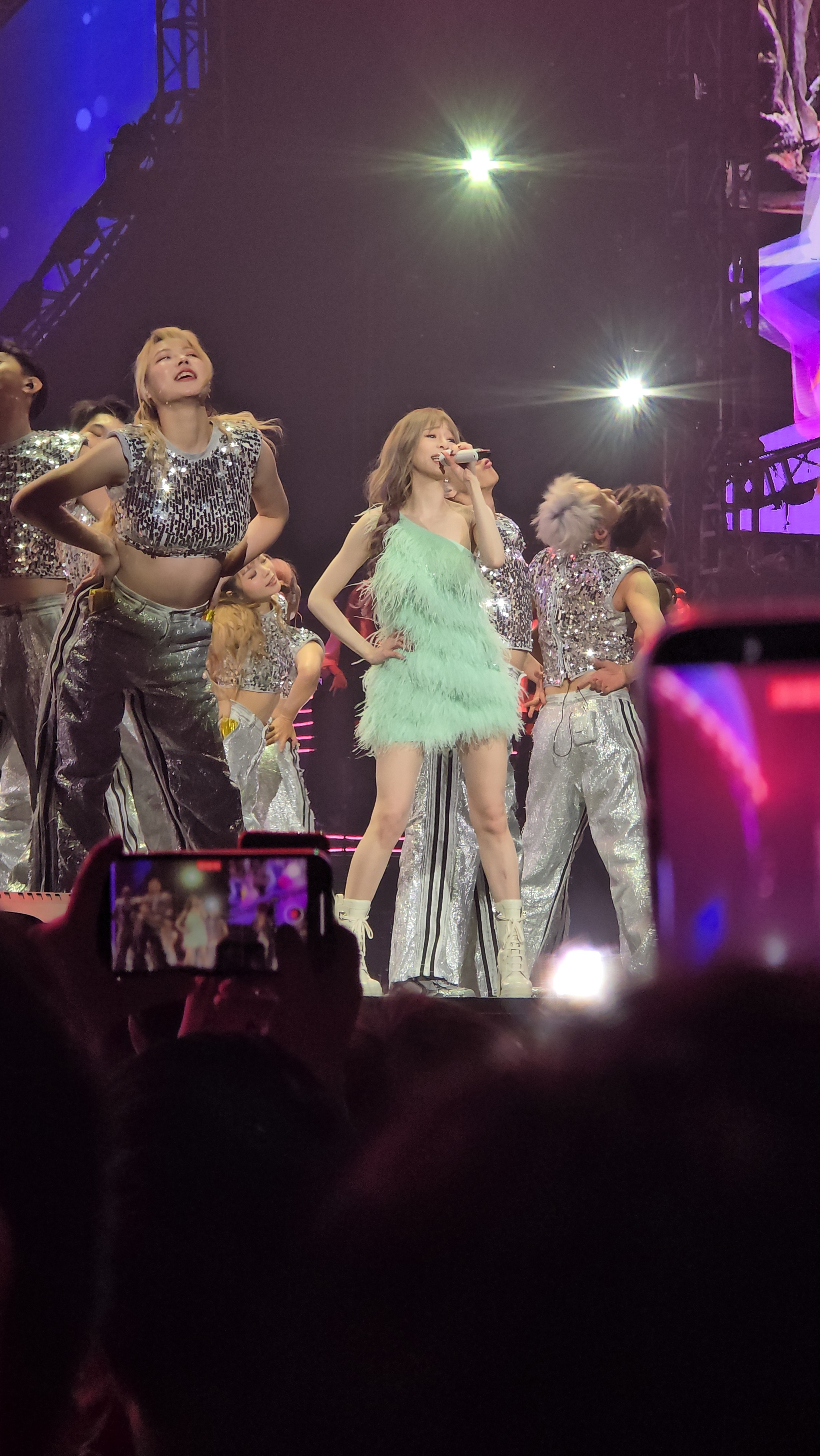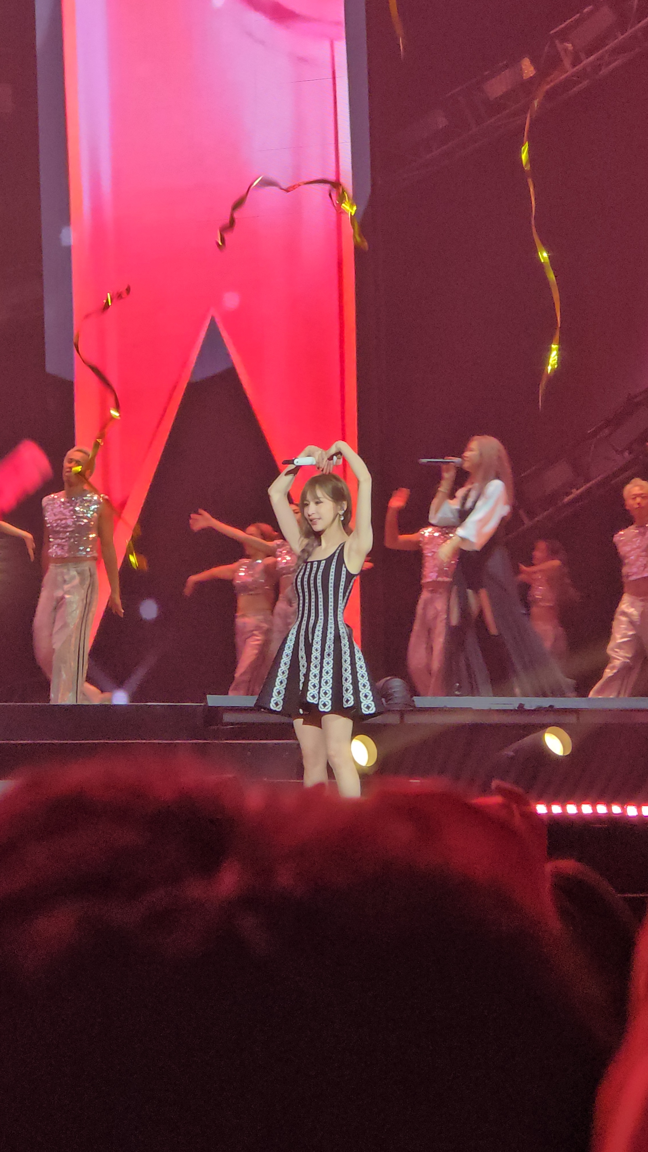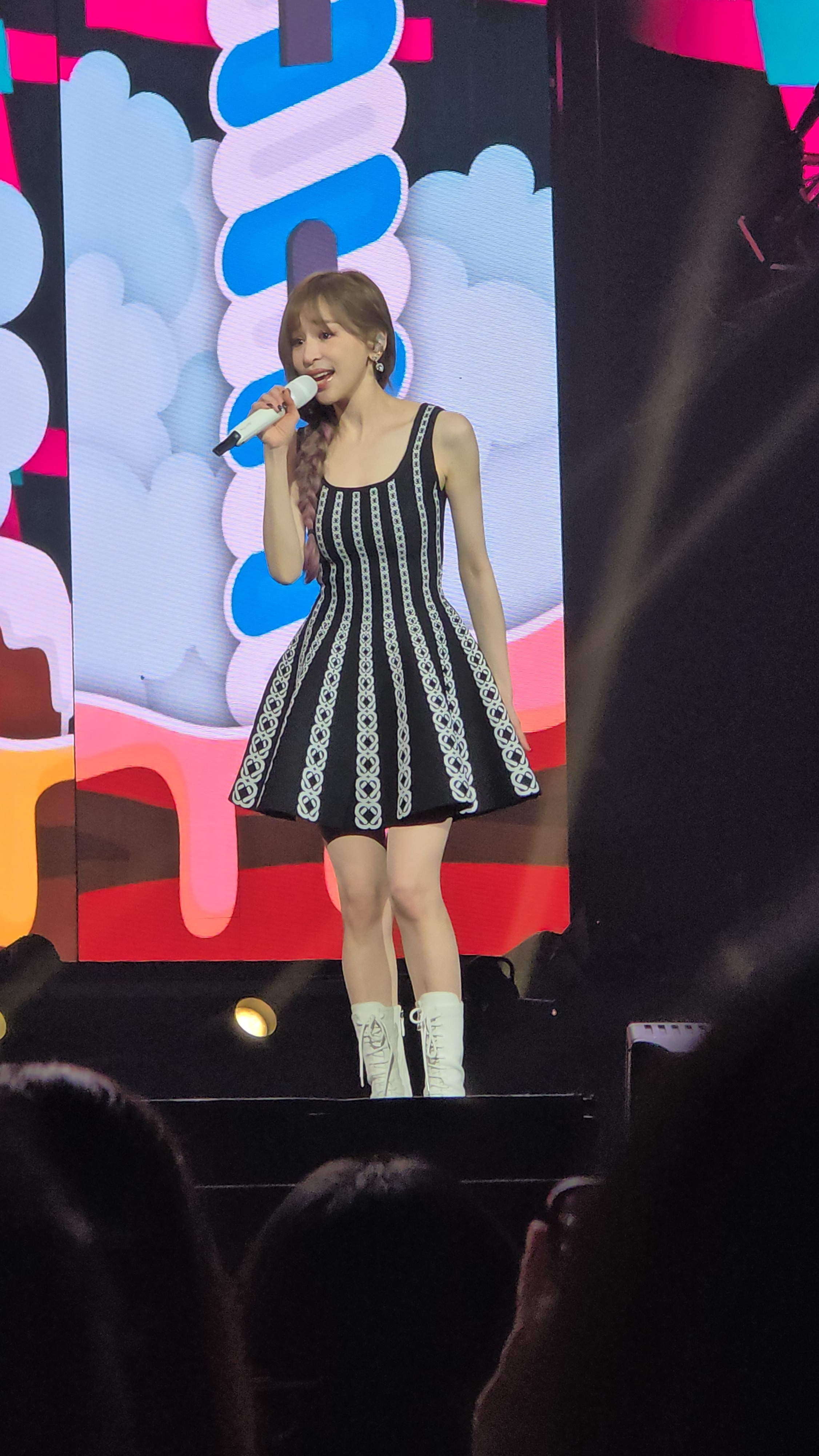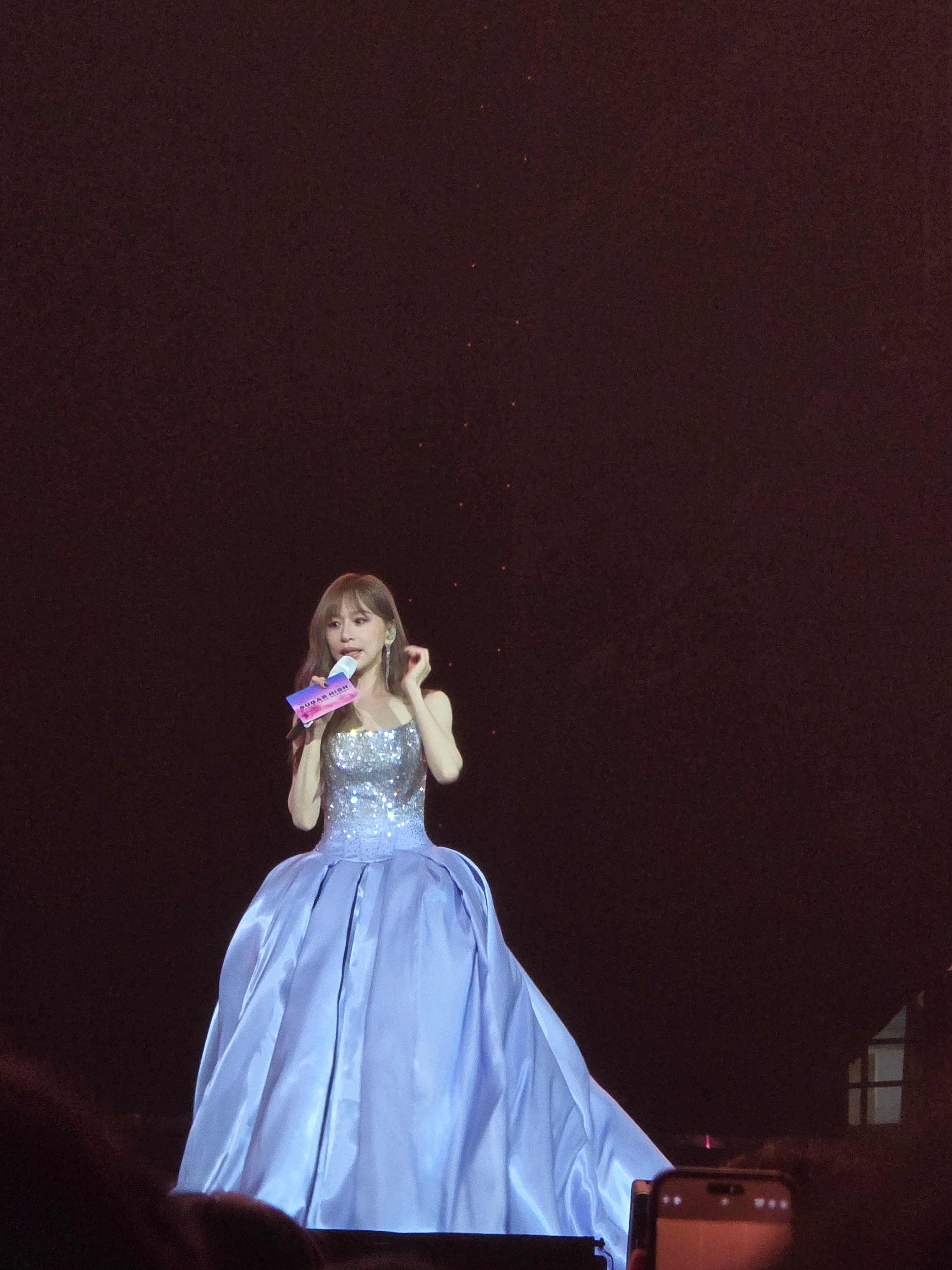 以前一直觉得王心凌就是粉色的,无论她穿着何种颜色的衣服,即便她唱着苦情歌,但内里都是那种最纯正用眼睛都尝得到甜的粉色,但看了她这一轮「Sugar High 2.0」的演唱会,我发现了她其实是高饱和度的彩虹色,至少舞台上的她就是缤纷得像糖果一样,也像糖果,有软有硬,粉色当然多到满溢,甜美、浪漫、女力……所有能从粉色延展开来的意象都从里面找得到,但仍有一些点缀的blue,一些暧昧的purple……就这么一股脑用超过2个半小时的时间不断翻滚过来演唱会开头就是Cyndi从天而降,不带废话的唱唱跳跳,20年后的〈Bite Back〉和20年前的〈Honey〉串到一起却毫无违和感,只是当年那个女孩厚重的甜,如今被时间渲染,甜得更加丰富更有层次Cyndi耳熟能详的作品真的很多,几乎每一part都有好几首让人能跟着唱的作品,更不用说〈我会好好的〉大家都能跟着和声,〈大眠〉很多人简直可以全曲背诵。〈不哭〉〈黄昏晓〉〈月光〉〈爱情句型〉都称得上是一时况味,她一唱起,当年与这些歌一同经历的人生碎片总不小心涌上心头我觉得最动人的时刻是中段〈那年夏天宁静的海〉响起时,蓝色的激光从舞台上以平行状蔓延开来,堪堪“盖住”了内场,激光表面又有波纹散开,就似一片宁静的海面,她穿着公主裙从延伸台上升起,内场的观众似在海平面下的童话世界仰望一位公主的经历,看台的观众则是海上的山与景,与她一同经历那年夏天的时光回放活在这世界真的很辛苦,大家看演唱会多少是怀着放松心情来的,而这场演唱会就像看了一场卡通片,她提供给大家的是月野兔花仙子美琪巧克力工厂。我总说,甜是任何一个时代的刚需,而王心凌就像一块老式的奶糖,无论你什么年纪,就算你没有那么嗜甜,但吃一口总是会享受到一些开心的