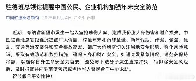 蓝战非称被绑架其实早就有预警了,南非安全度不高,而且针对中国人。祖国妈妈让你不要