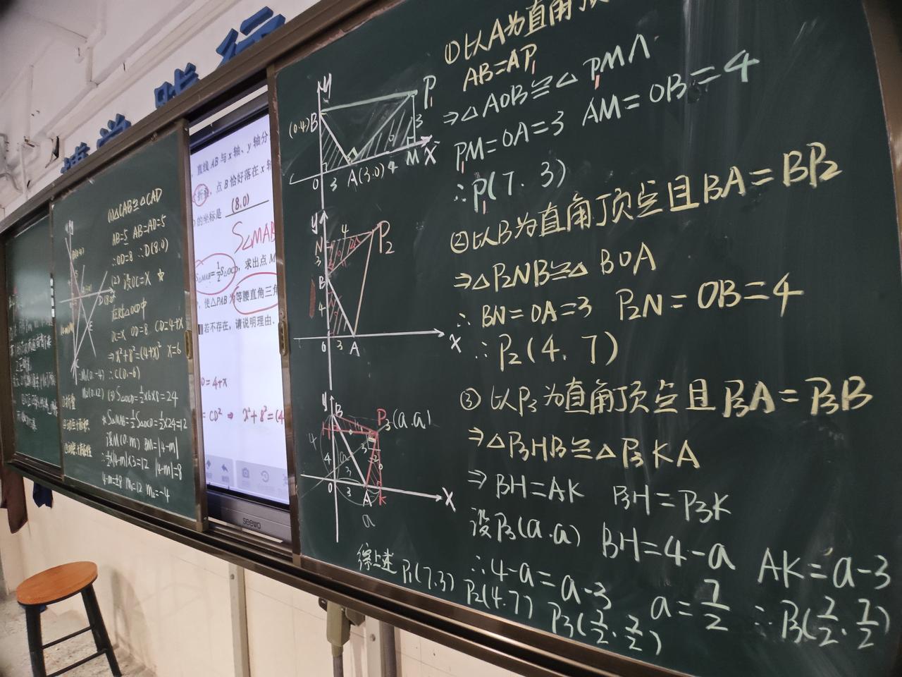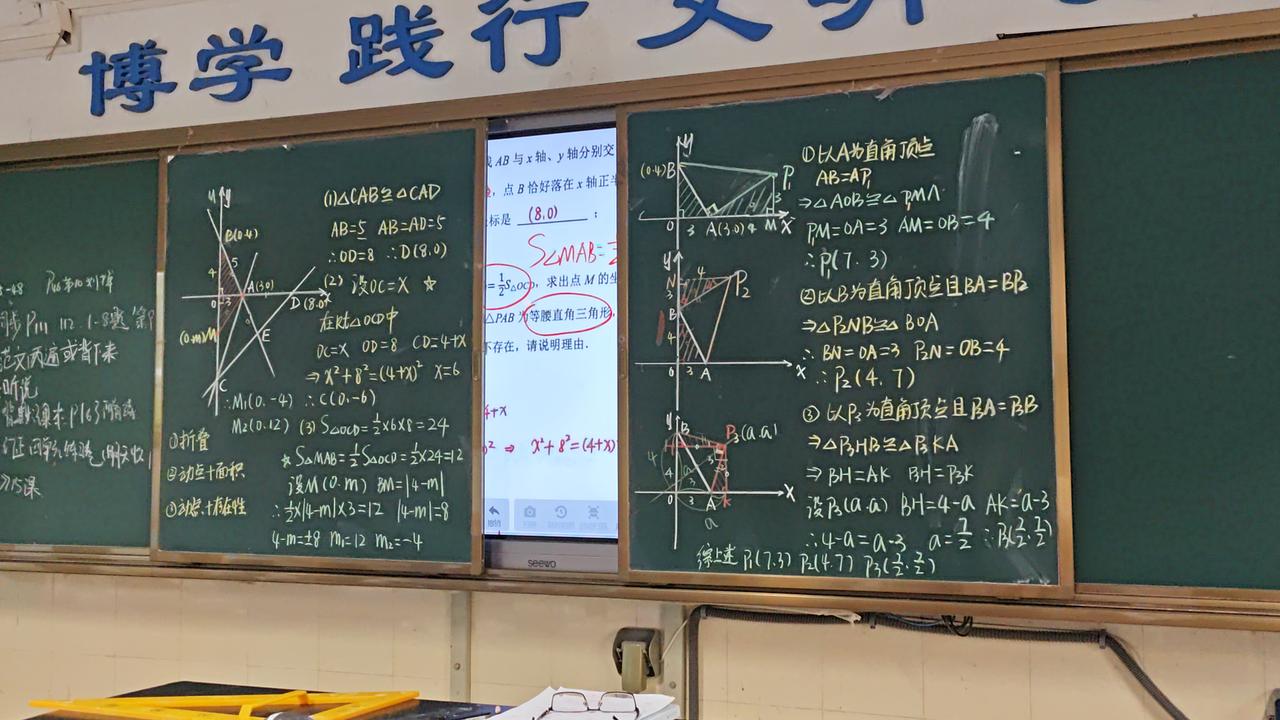 今天啃了一道初二数学的硬骨头,一次函数的压轴题。肯定又有很多朋友问我,这样板书不浪费时间吗,其实讲真的,真不浪费时间,熟练了速度就很快的,花大量时间做PPT,我倒觉得挺浪费时间的。当年教书不都这样吗,没有多媒体没有PPT,一支粉笔写春秋。这可能是最后的一段教书岁月,以前从来没留下印记,现在留下一点照片。当然,因为我觉得这道题非常好,涉及到初二数学压轴题的很多技巧和方法,所以才通过纯板书的方式讲解。绝大部分时候是不可能这样板书的,还是利用PPT。但很多学生的基础极其薄弱,这些题对他们来说,基本上成为不可能完成的任务。初中数学 初三几何压轴题 函数基础题 函数经典题 作业帮【初中几何48模型】名师有大招初中教辅数学七八九年级