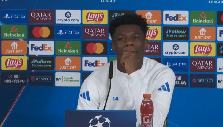 直播吧12月9日讯北京时间12月11日4:00,皇马将在欧冠联赛阶段第6轮迎来曼城的挑战,皇马中场琼阿梅尼出席赛前新闻发布会。