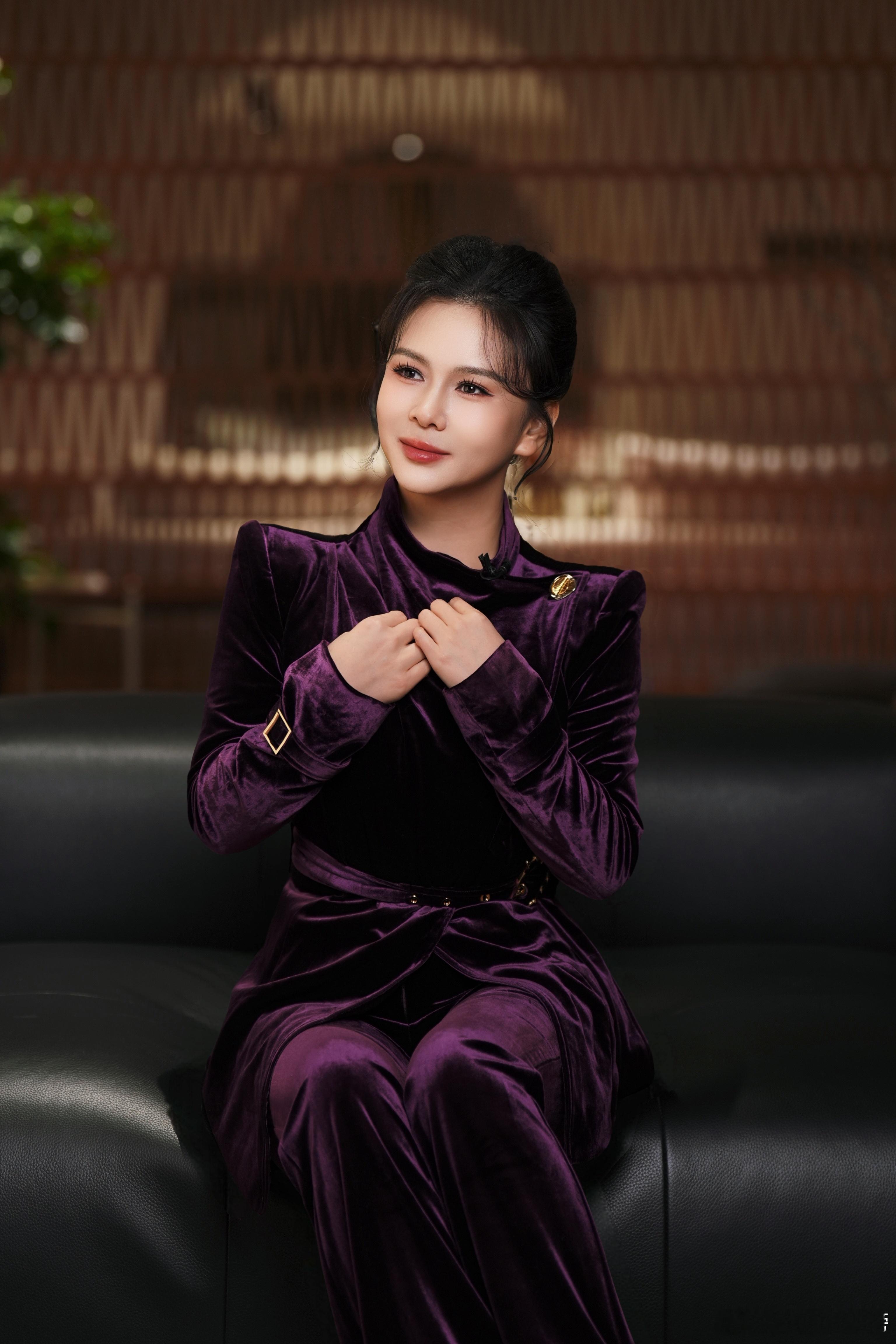 凤凰网财经主持人刘美希时尚穿搭 丝绒套装自带复古滤镜,紫韵流光设计加分,刘美希诠