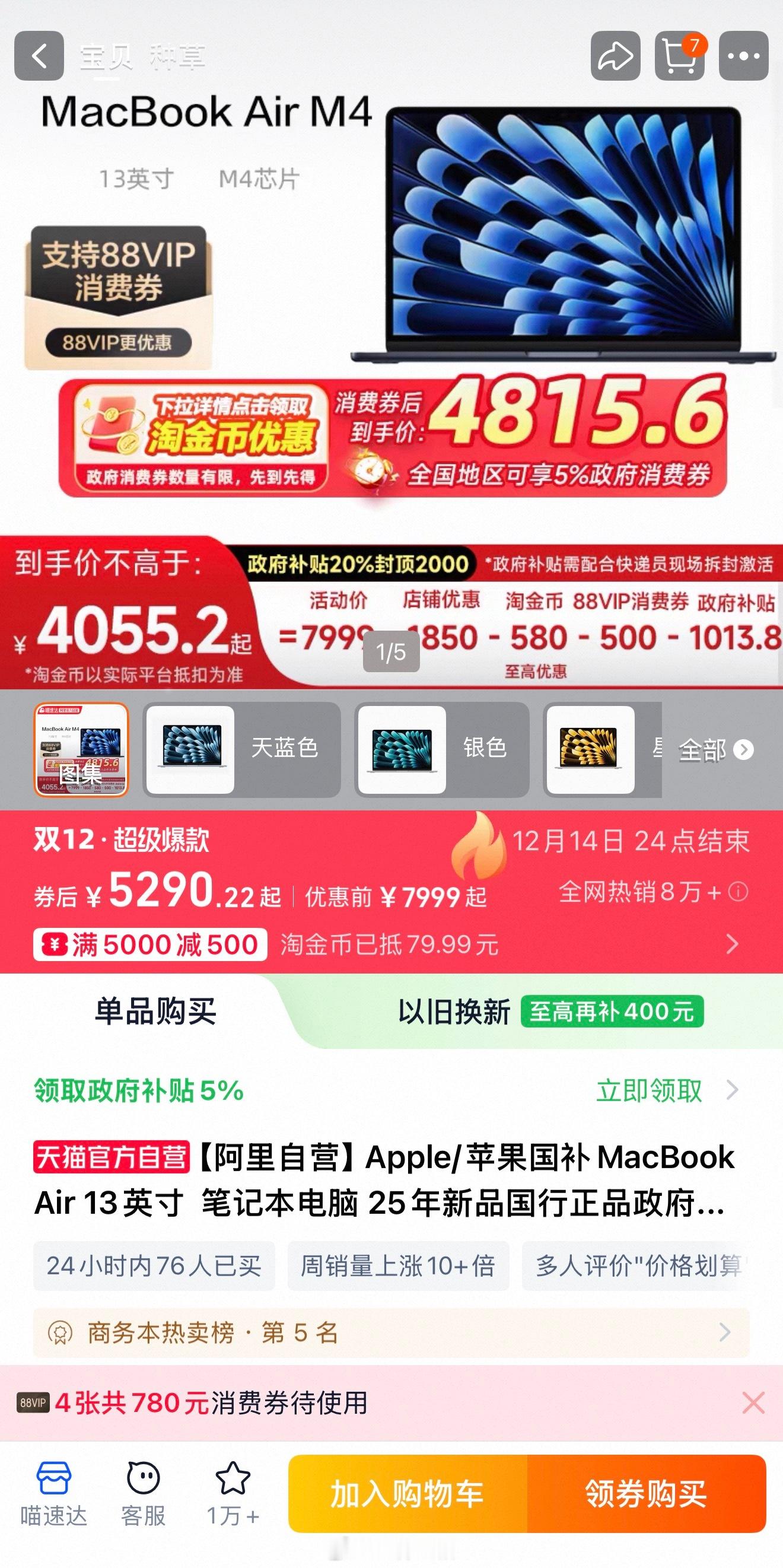 MacBook这价格太疯狂了!原价7999元的MacBookAirM4,现在