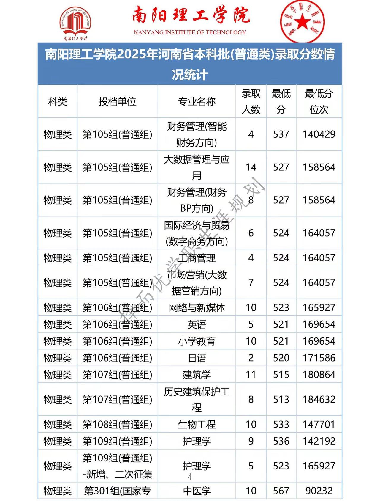 2025年南阳理工学院河南各专业招生情况。南阳理工学院物理组:电气、计算机、电子信息、机械十万位次左右可报;历史组:财务、汉语言、工商管理三万位次左右可报。南阳理工学院 河南高考