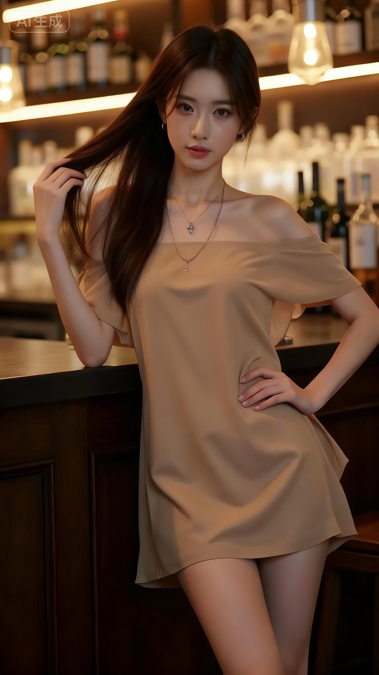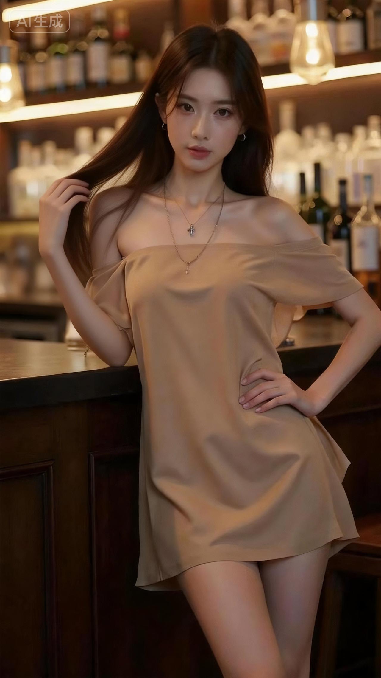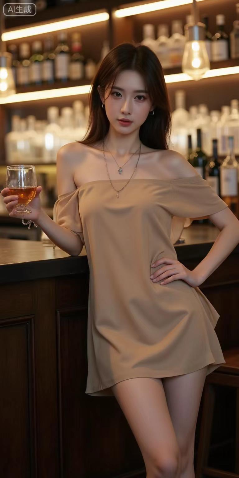 奶杏露肩裙+微醺氛围=酒吧里的温柔大小姐微醺美少女 温柔奶杏色穿搭 气质酒吧女郎