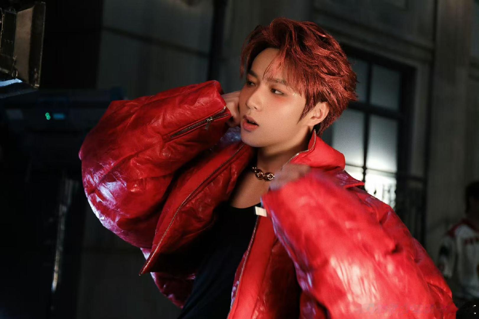 刘耀文红衣红发造型 我们耀文就这样红红的很安心~