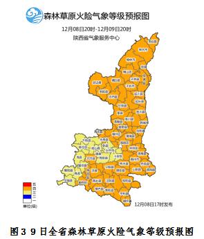 预计今天白天:陕北晴天转多云,关中、陕南阴天间多云,关中西部局地有小雪或雨夹雪(0~1毫米),汉中西部局地有分散性小雨或雨夹雪(0~1毫米)(图2)。今天晚上:全省阴天间多云。今日全省大部森林草原火险气象等级为4级(高度危险)(图3),需加强防范。