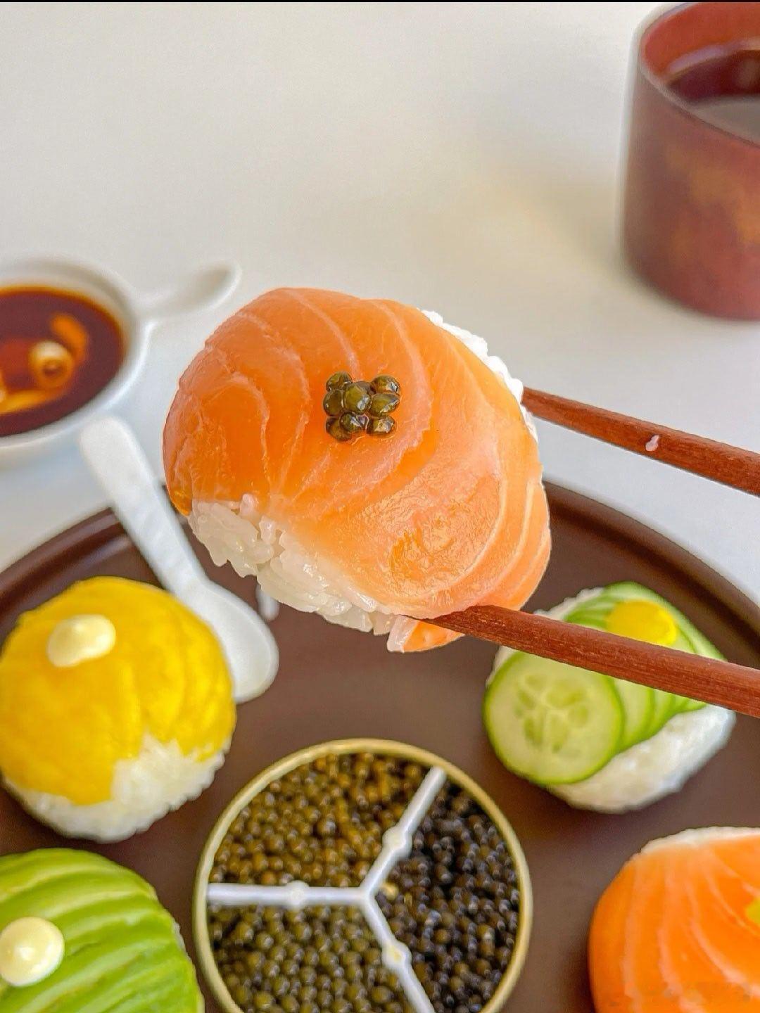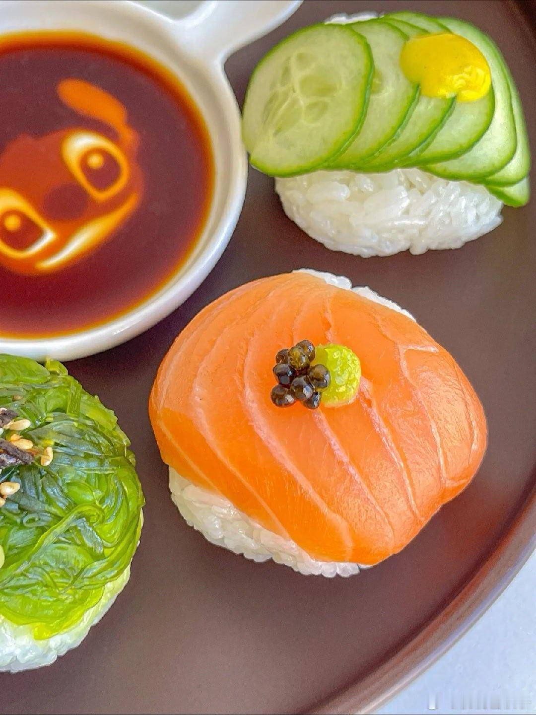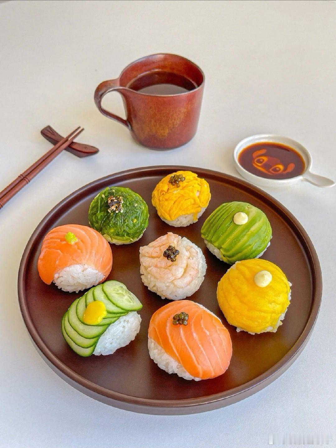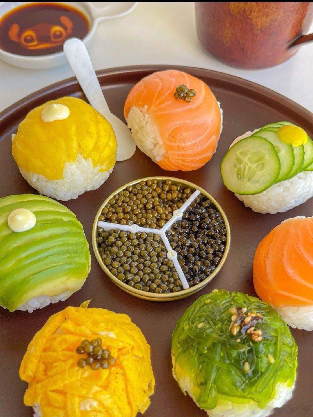 手鞠寿司!俺心心念念很久了~第一次做~一口一个贼满足食材:🍣米饭➕鱼子酱➕三文鱼➕鸡蛋丝➕黄瓜片➕甜虾➕芒果➕牛油果➕海草做法:👩🏻🍳1.米饭加一点寿司醋搅拌均匀 团成一般大小的饭球2.铺一张保鲜膜 依次放上食材➕饭团 包紧再摊开就OK啦3.同样的方法做好后装盘 按个人口味放上鱼子酱、蛋黄酱、芥末酱、黄芥末酱、熟芝麻…即可可可爱爱的一盘 做完后端给朋友看 还以为我叫的外卖 哈哈哈 小小成就感 !组个冬日养生局温暖的食光兴趣稀引力计划我的美食日记