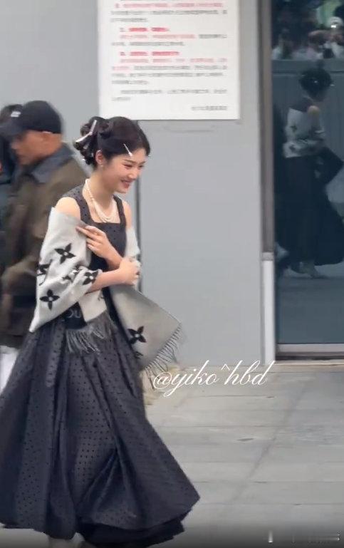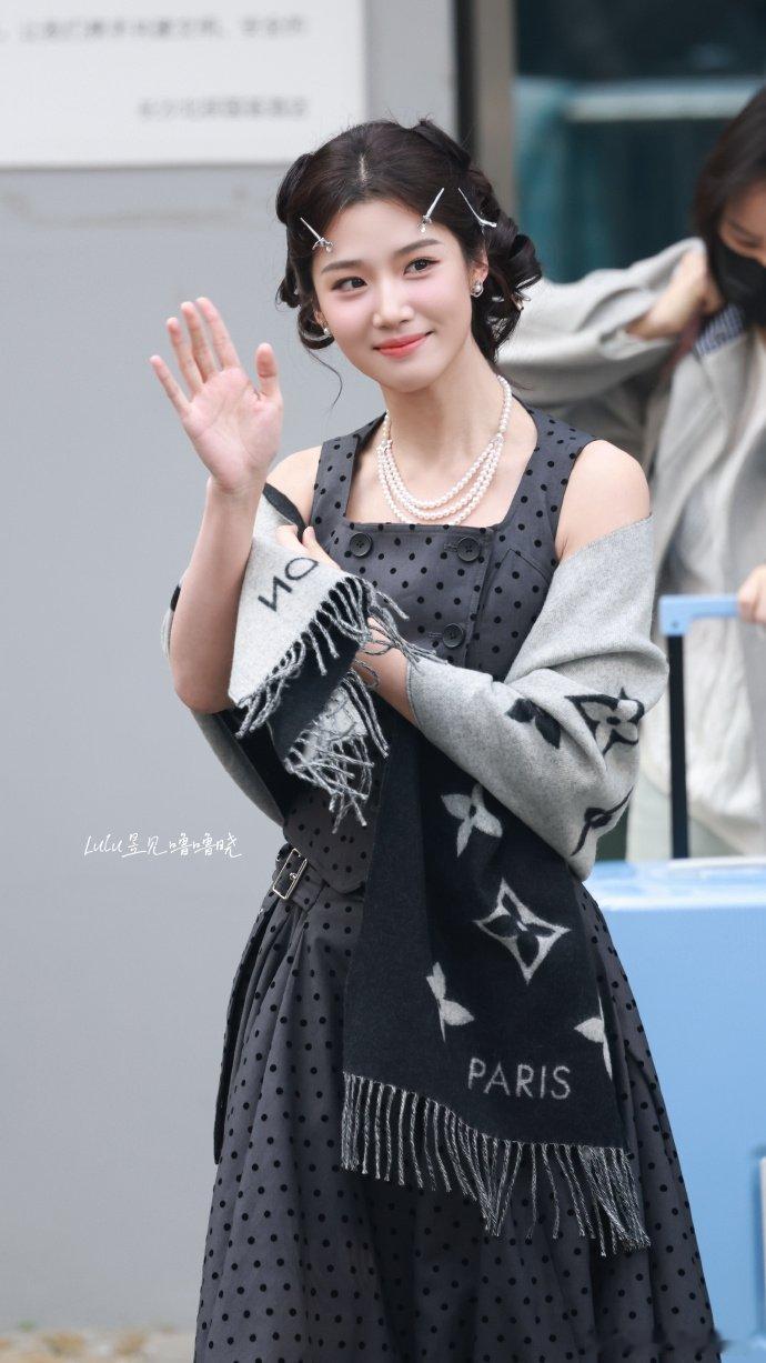 卢昱晓hi6录制上班路透你好星期六 卢昱晓上班路透来袭,黑色波点裙搭卷发,沪上民国千金气质超绝,还亲切回应粉丝,超灵动~卢昱晓