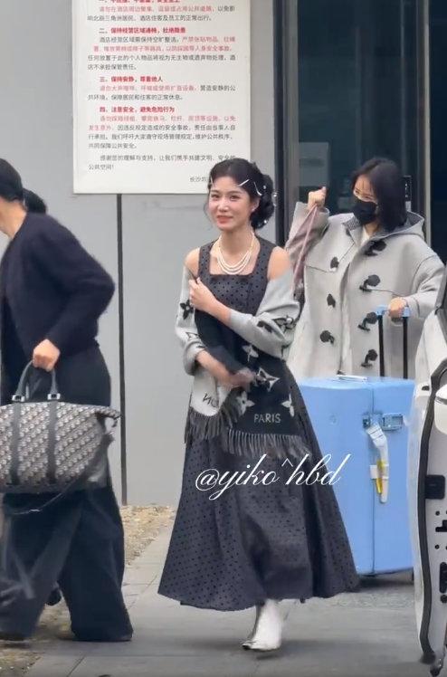 卢昱晓hi6录制上班路透你好星期六 卢昱晓上班路透来袭,黑色波点裙搭卷发,沪上民