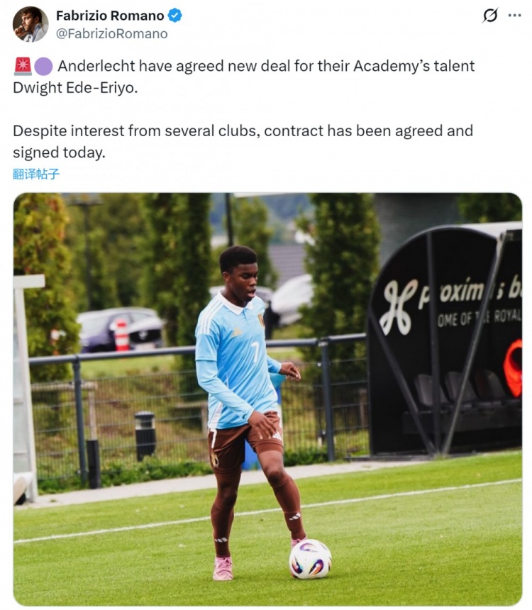 罗马诺透露,安德莱赫特与青训梯队15岁小将埃里约就新合同达成协议,尽管多家俱乐部对这位天才球员感兴趣,但安德莱赫特已与他谈妥续约,双方今日签署了新合同。