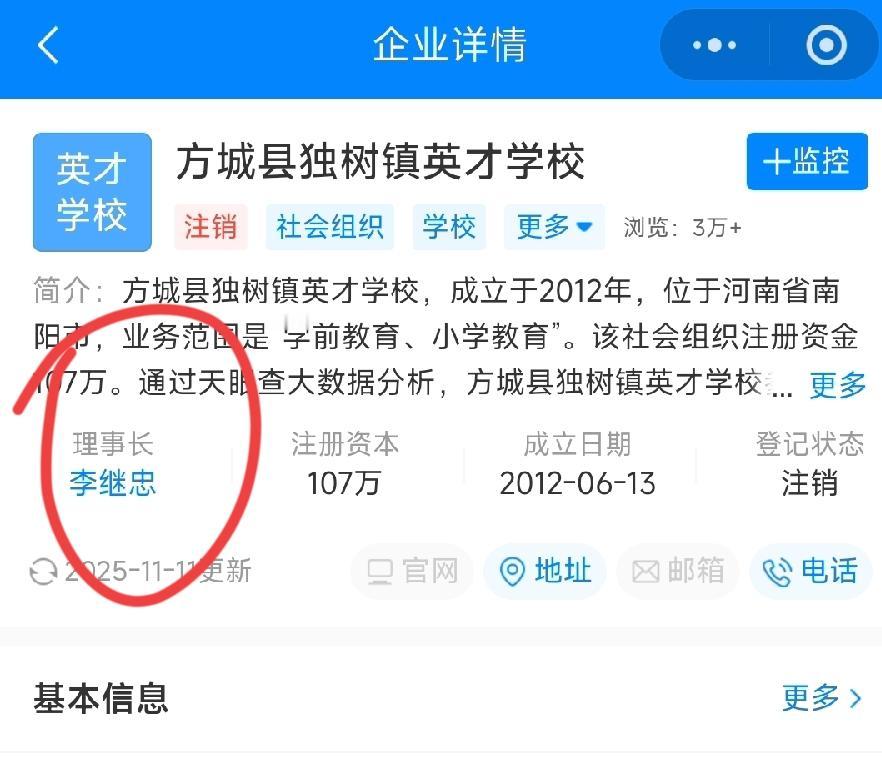 方城英才学校火灾,学校老板叫李继忠,现在肯定被抓起来了,当地乡镇人,应该5、60岁了,据报道,从小成绩出色,上世纪80年代考上了当地一所师范院校,当时起码18岁,距今40年了,毕业后成为一名公办学校教师,2000年下海经商,创办了独树镇第一所民办学校,打工潮很多留守儿童,可见很有生意头脑,肯定赚到钱了,此后越办越大,荣誉一大堆! 本来名利双收,直到一场火灾,一夜回到解放前!事故真正原因还没公布,学校、李继忠有多大责任?13位孩子遇难,不能不明不白地走了!希望尽快给出调查结果!