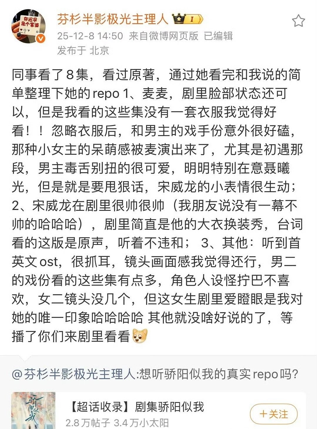 宋威龙、赵今麦《骄阳似我》repo 总结一下 : 两人有cp感好磕、宋威龙剧里很帅