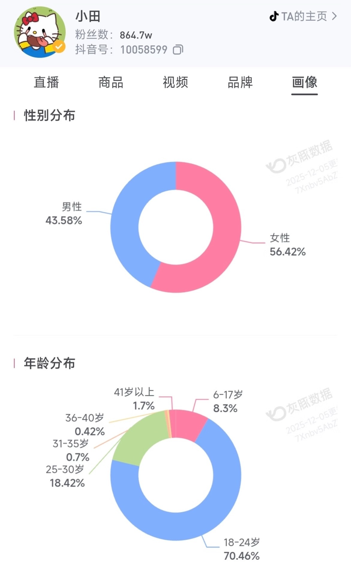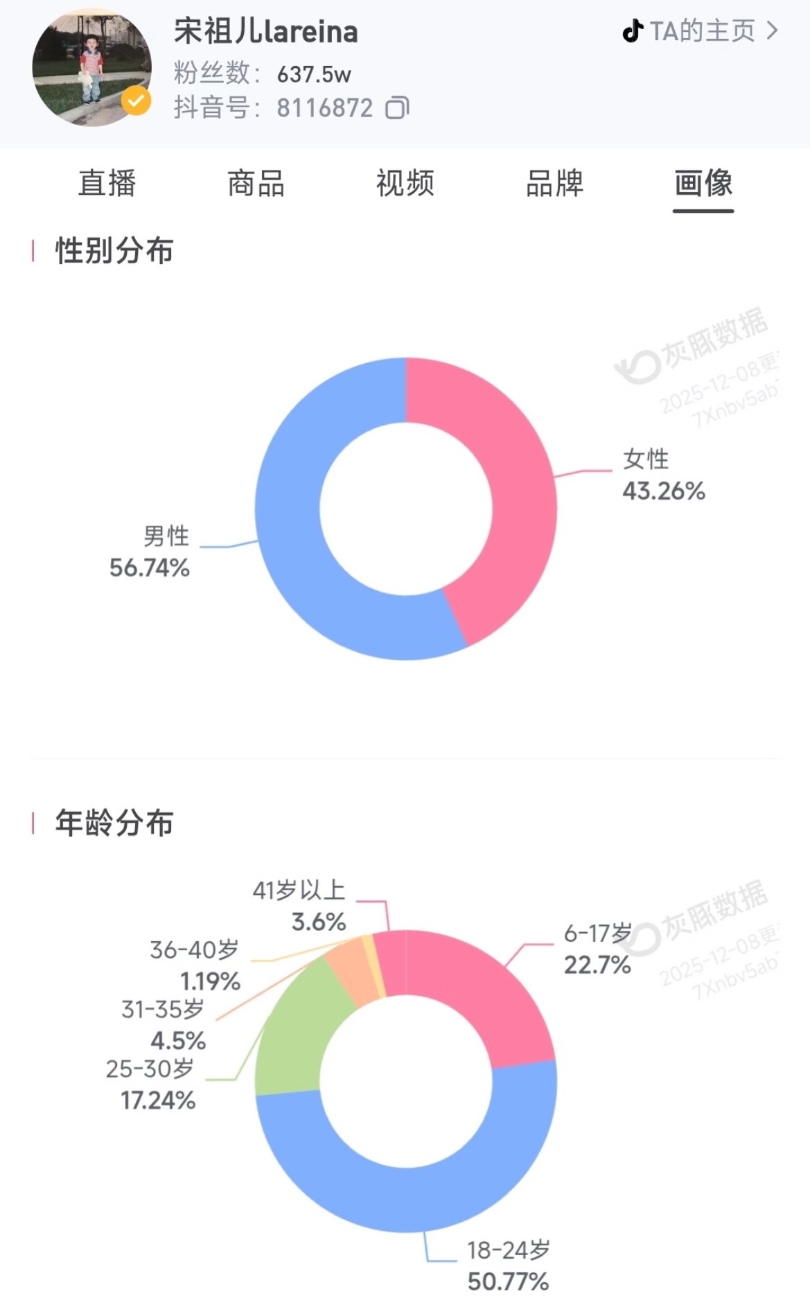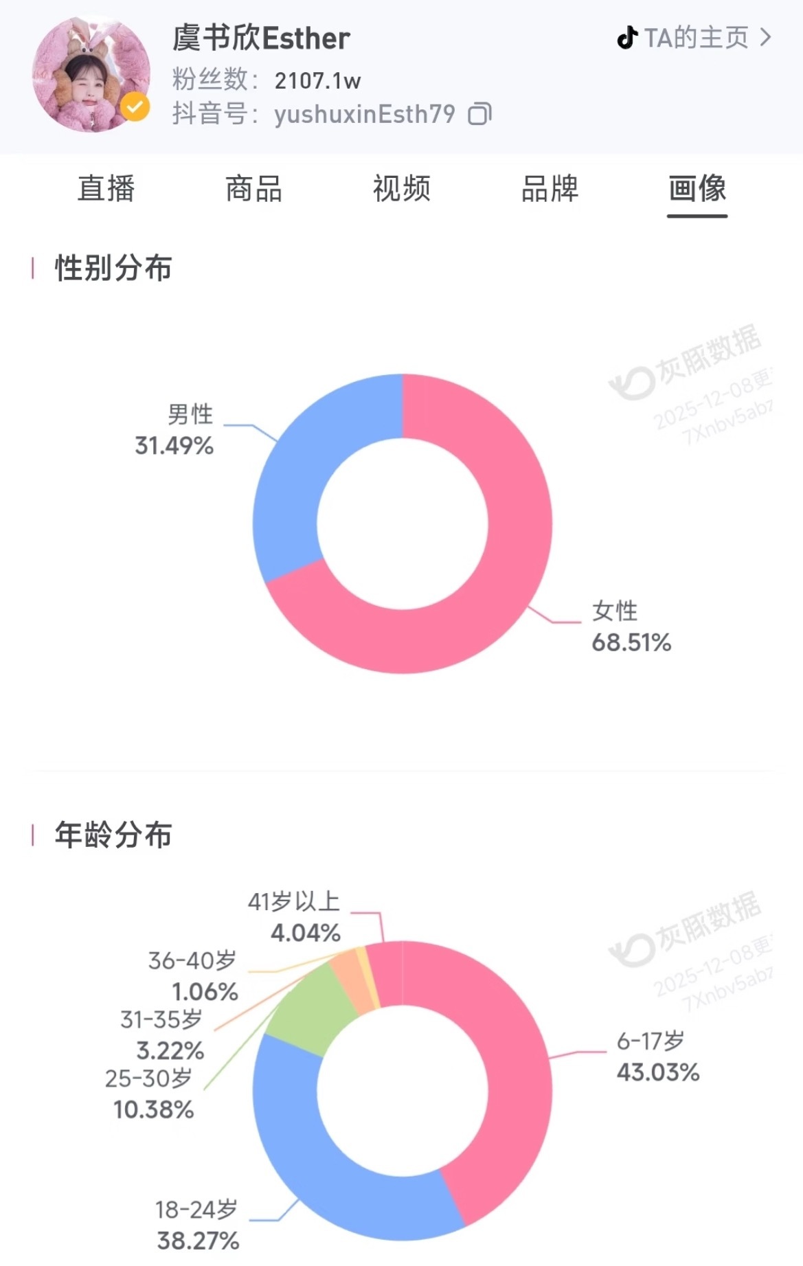 部分女明星的🫘粉丝 性别分布和年龄分布:赵露思 关晓彤 章若楠 虞书欣 卢昱晓