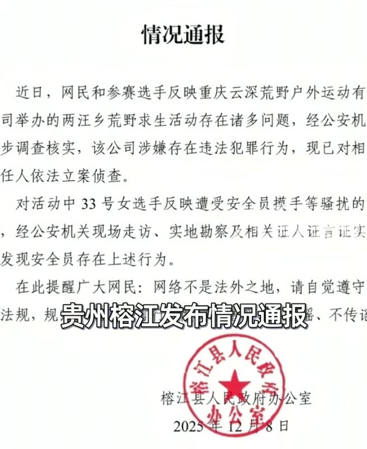 差点就信了,榕江荒野求生从头到尾竟然是一场自导自演的戏,那位自称被安全员骚扰的女选手,不过是请来的演员。 当初看这位女选手自述遭遇,差点落了泪,她绘声绘色描述自己的是如何参赛、如何被骚扰、如何艰苦、家里两个孩子又如何舍不得之类的,博得众多网友同情。 很多人在同情心的带动下,跑去榕江官媒下挖苦、质问,一时间负面影响不断。 结果呢?谁能想到一切都是假的,这女选手是主办方请来的演员,眼看搞荒野求生流量拼不过七星山,于是搞这么一出戏,为的就是博眼球,实在是可恶。 当时女选手在“哭诉”时,就感觉奇怪,有两个疑点。 首先她太“收放自如”了,前一秒眼看就要落泪,哭腔都出来了,结果下一秒瞬间正常。 其次按照惯例来说,这一类揭发丑事的视频,是不会流传出来的,结果它偏偏完整的被放了出来,很明显有人故意让其传播。 现在真相大白,主办方涉嫌违法被立案调查,相关涉事人员一个都跑不掉,损害当地声誉、妄图欺骗网友,这群人必将接受法律的严惩。