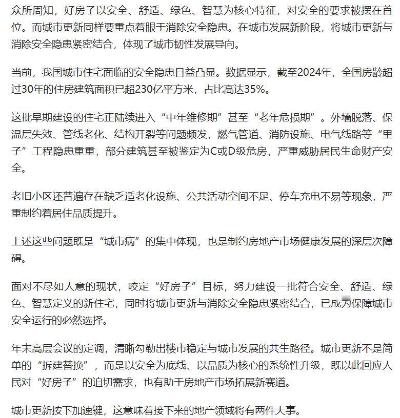 “稳楼市”的提法,在中央经济工作会议前夕,再度出现在高层会议的表述中。12月3日,国务院以“深入推进以人为本的新型城镇化,着力构建城乡融合发展新格局”为主题,进行第十七次专题学习。 原文来源:时代周报《年末再提“稳楼市”,城市更新按下加速键》