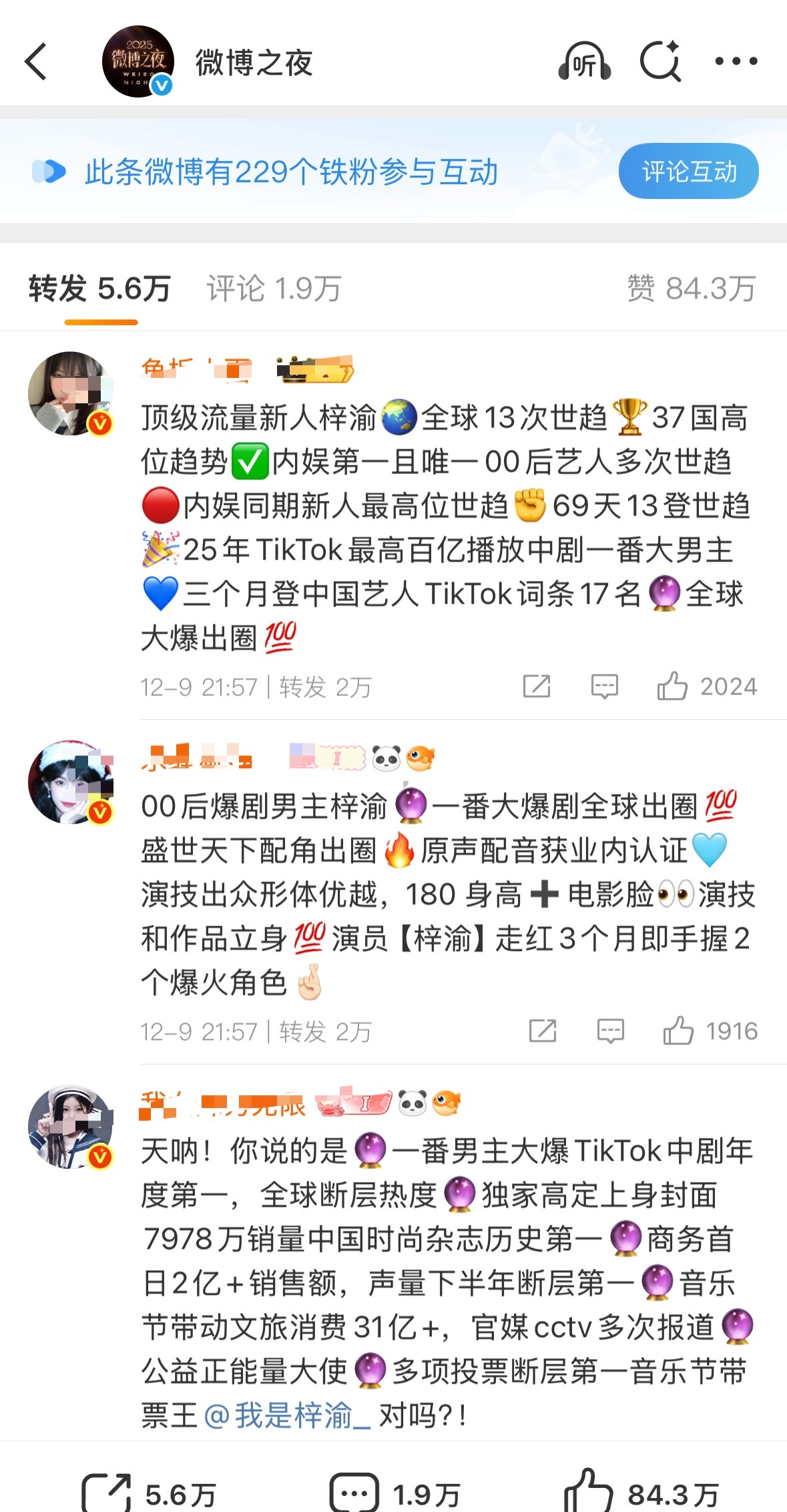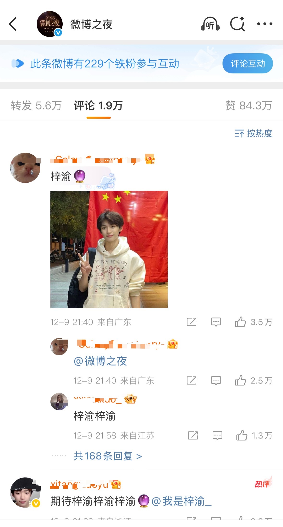 微博之夜要开始了,全是说想看梓渝的!