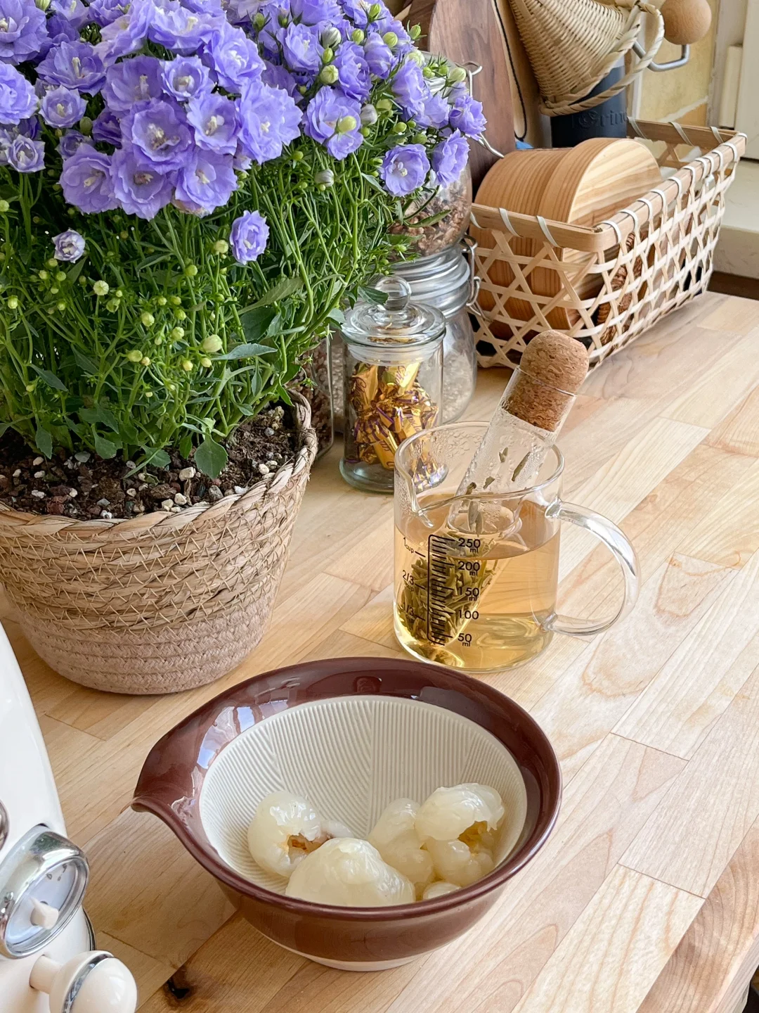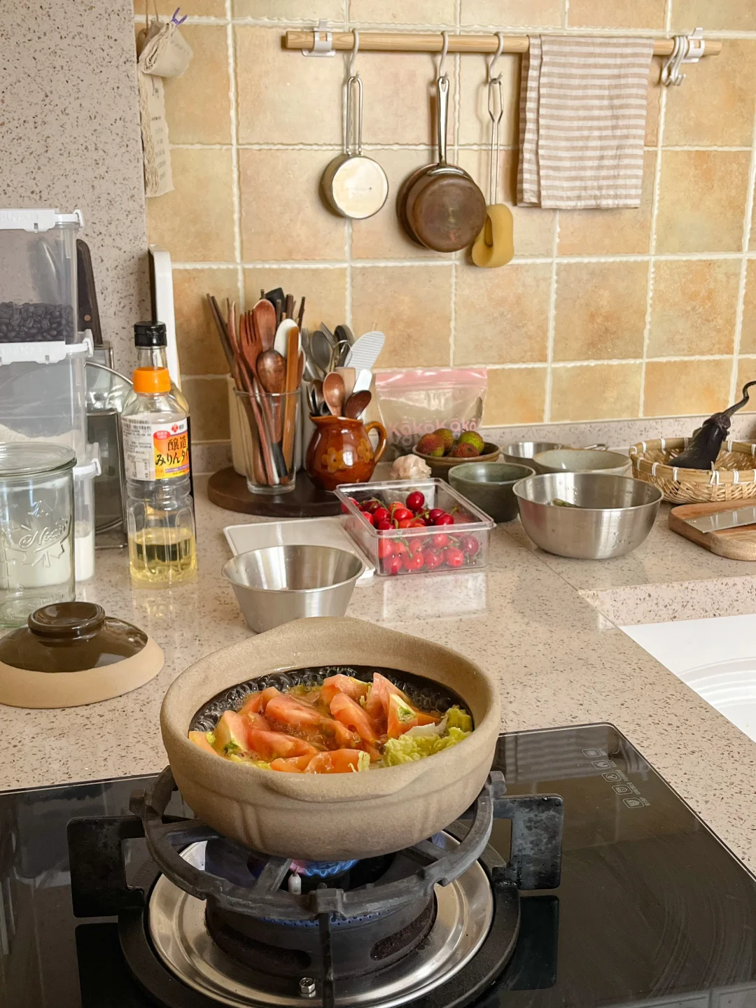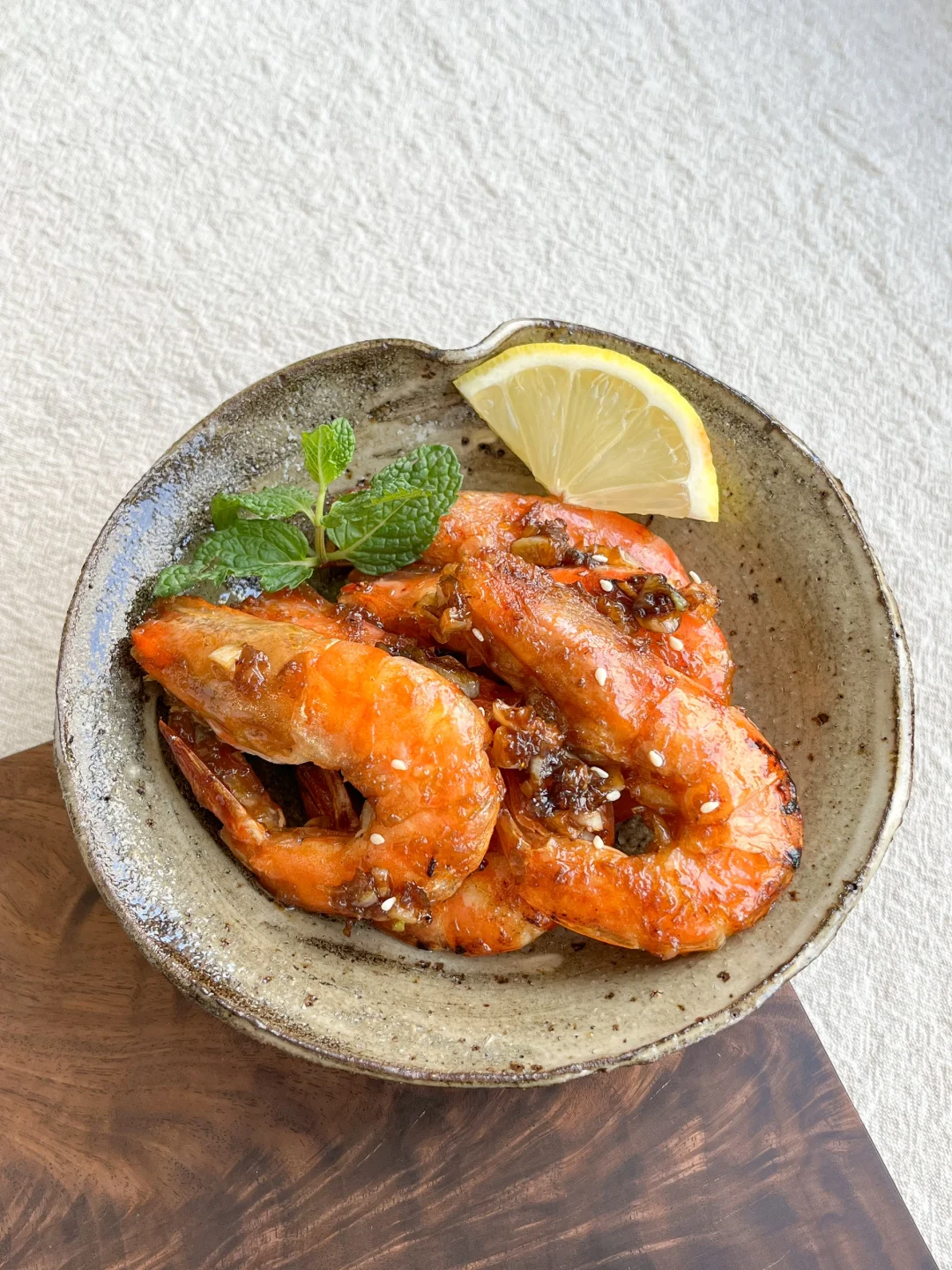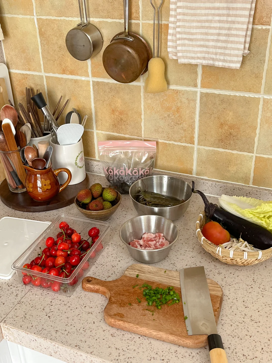 今日午餐: 肉末茄子饭🍆 柚子汁拌豆芽🌱 芥末大虾🦐 白菜汤🥣 冰荔枝绿茶🍵 红灯樱桃🍒 今天下雨 早市人很少 所以买到了很新鲜的虾 我备菜的时候有只虾一直在蹦跶 试图越狱逃跑 买了一斤活虾 吃一半 另一半就放保鲜袋里冻着 做了一道芥末大虾 巨巨巨巨好吃 我用的山葵酱 不辣也不呛鼻 是淡淡的清香味 可以多放一点 加生抽、白糖、味淋和盐 调酱汁 撒点淀粉 把虾壳煎的脆脆的 出国前再放块黄油 蒜末和芥末混在一起 真的太好吃了