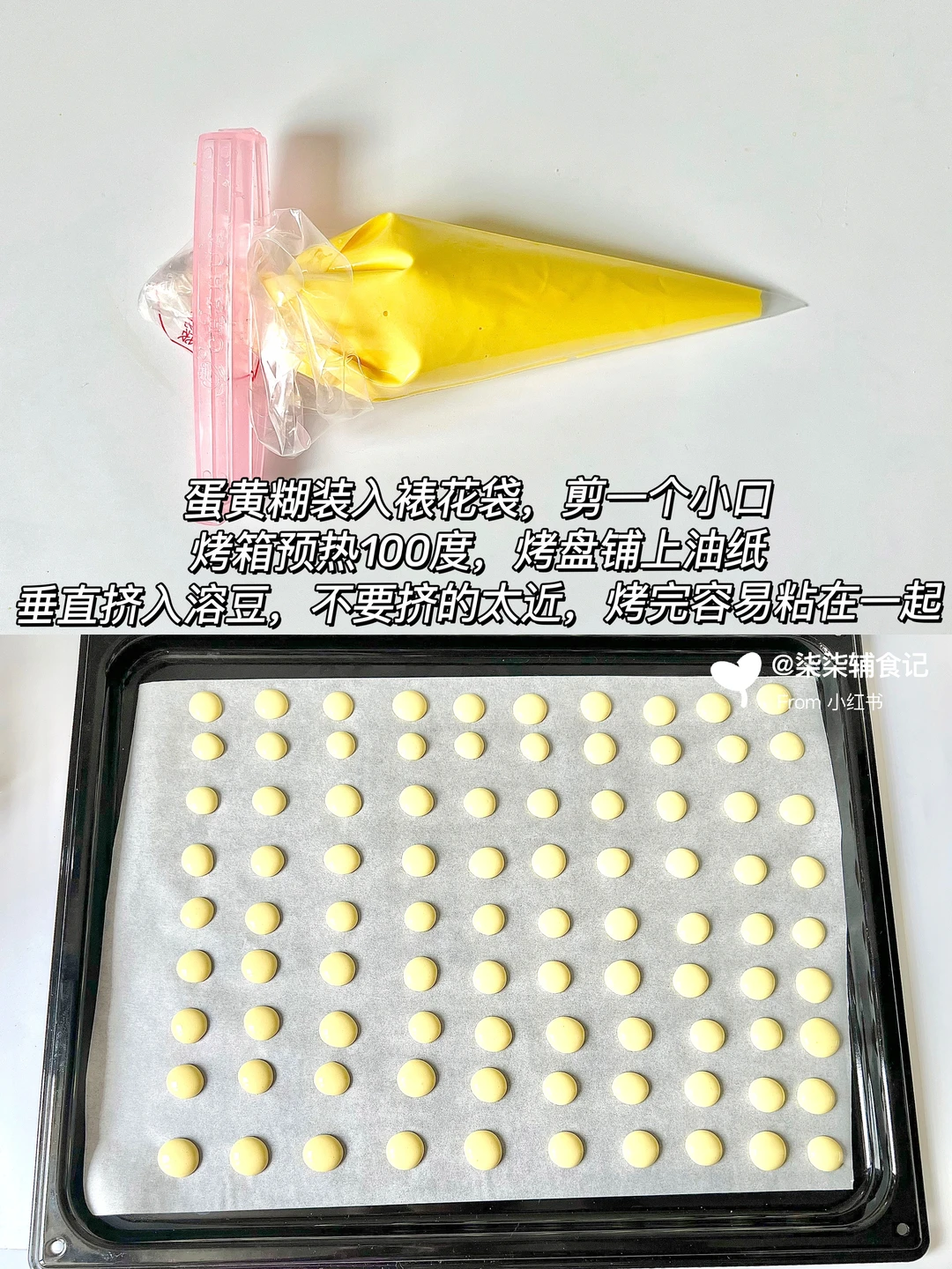 ▫️烤箱提前预热100度,蛋黄糊装入裱花袋,剪一个小口