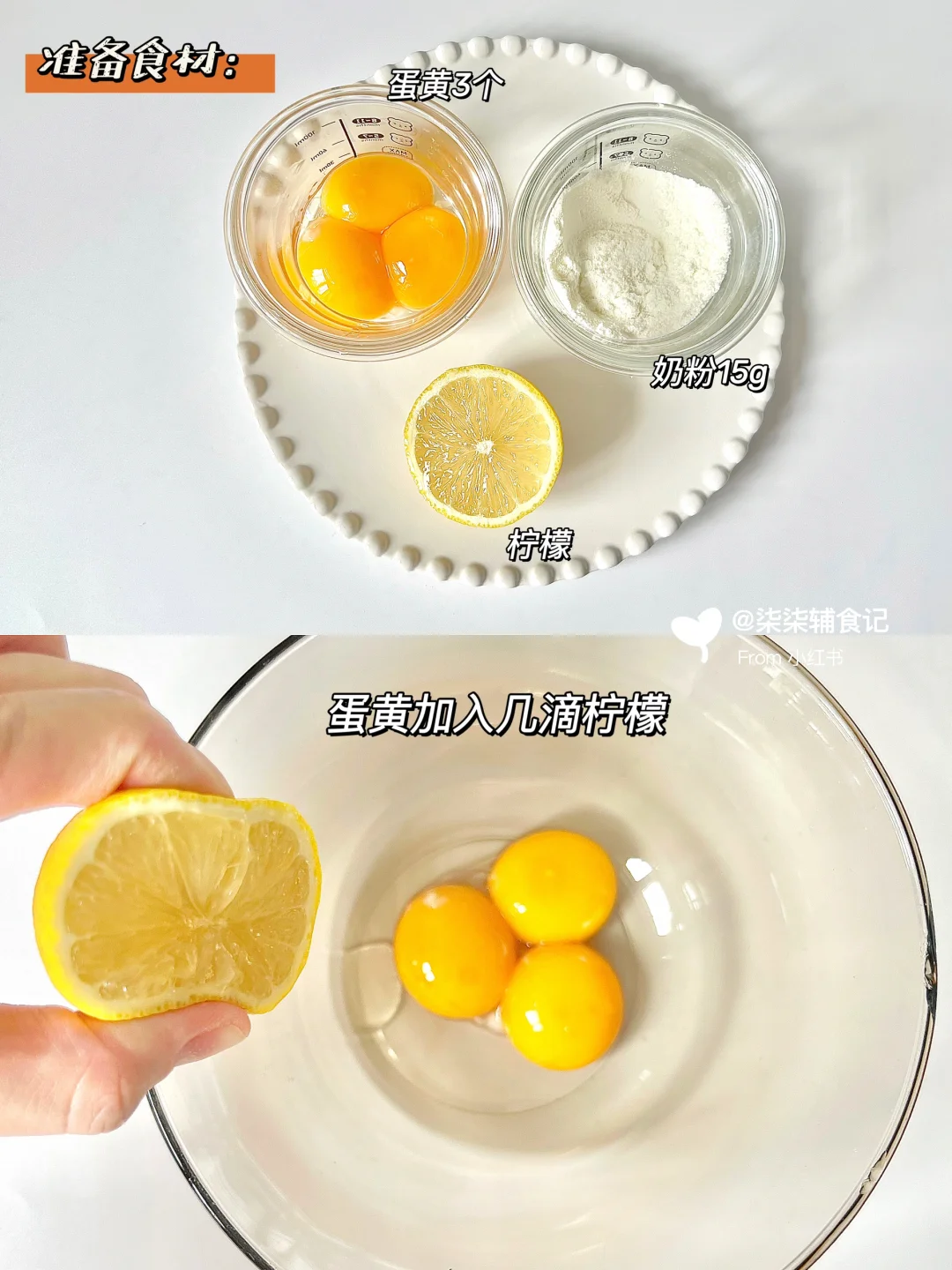 ▫️食材准备:蛋黄3个、奶粉15g、柠檬适量
