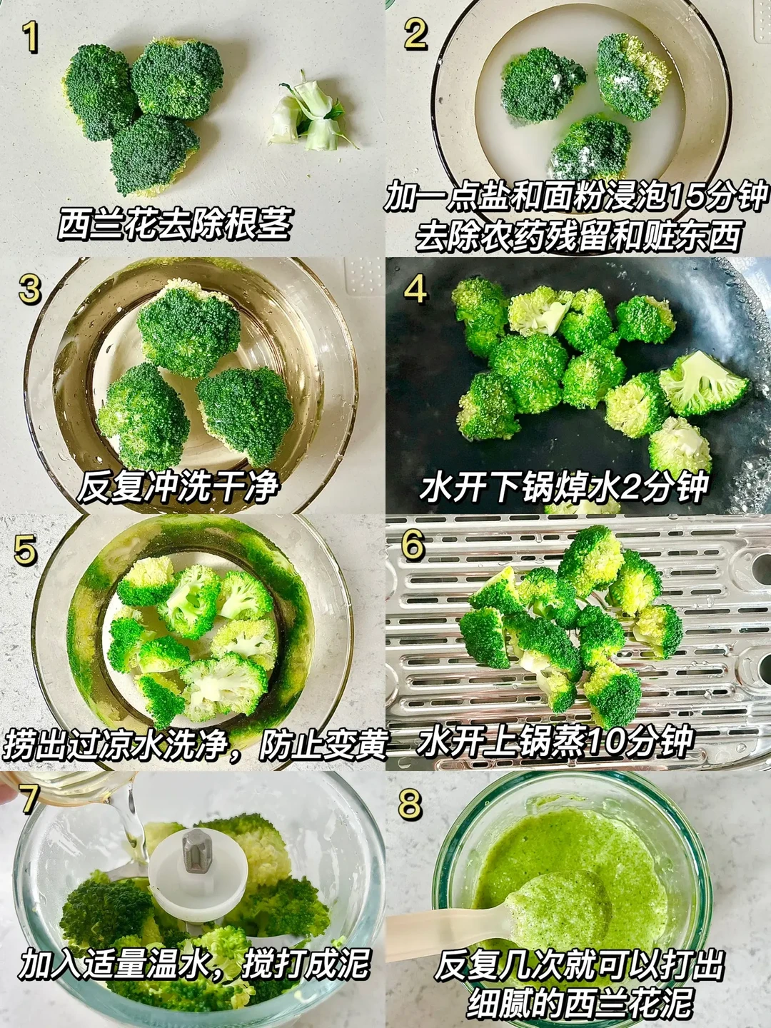 8️⃣少量多次加水,反复几次就可以打出细腻的西兰花泥✅