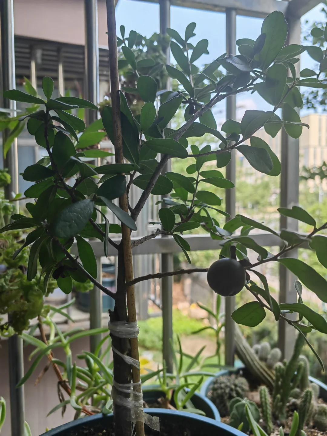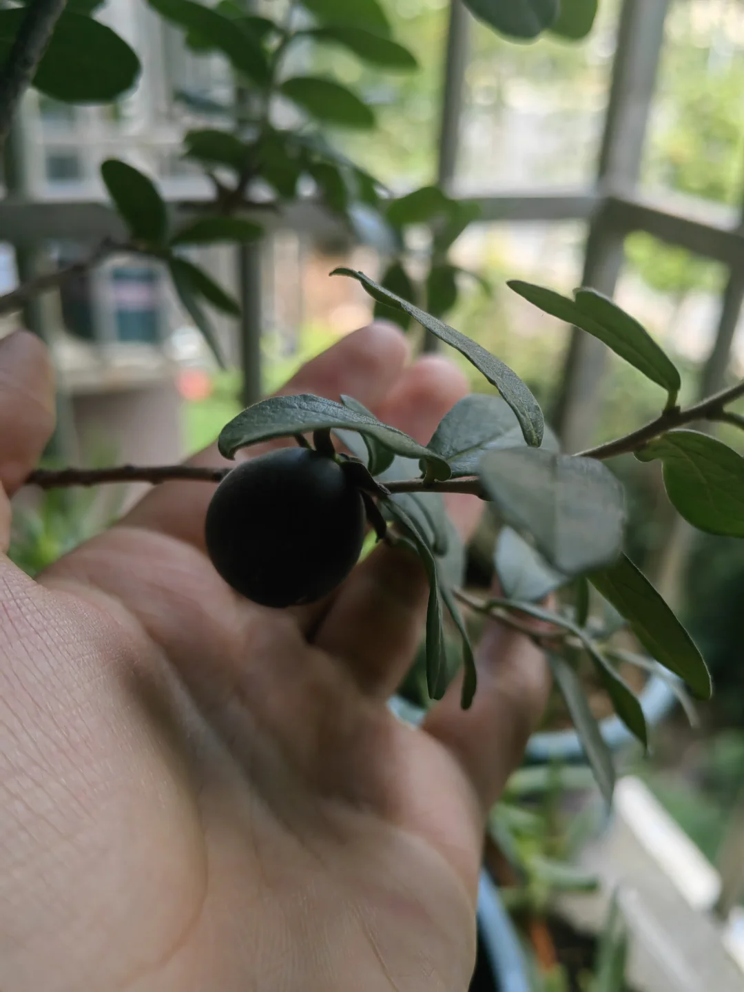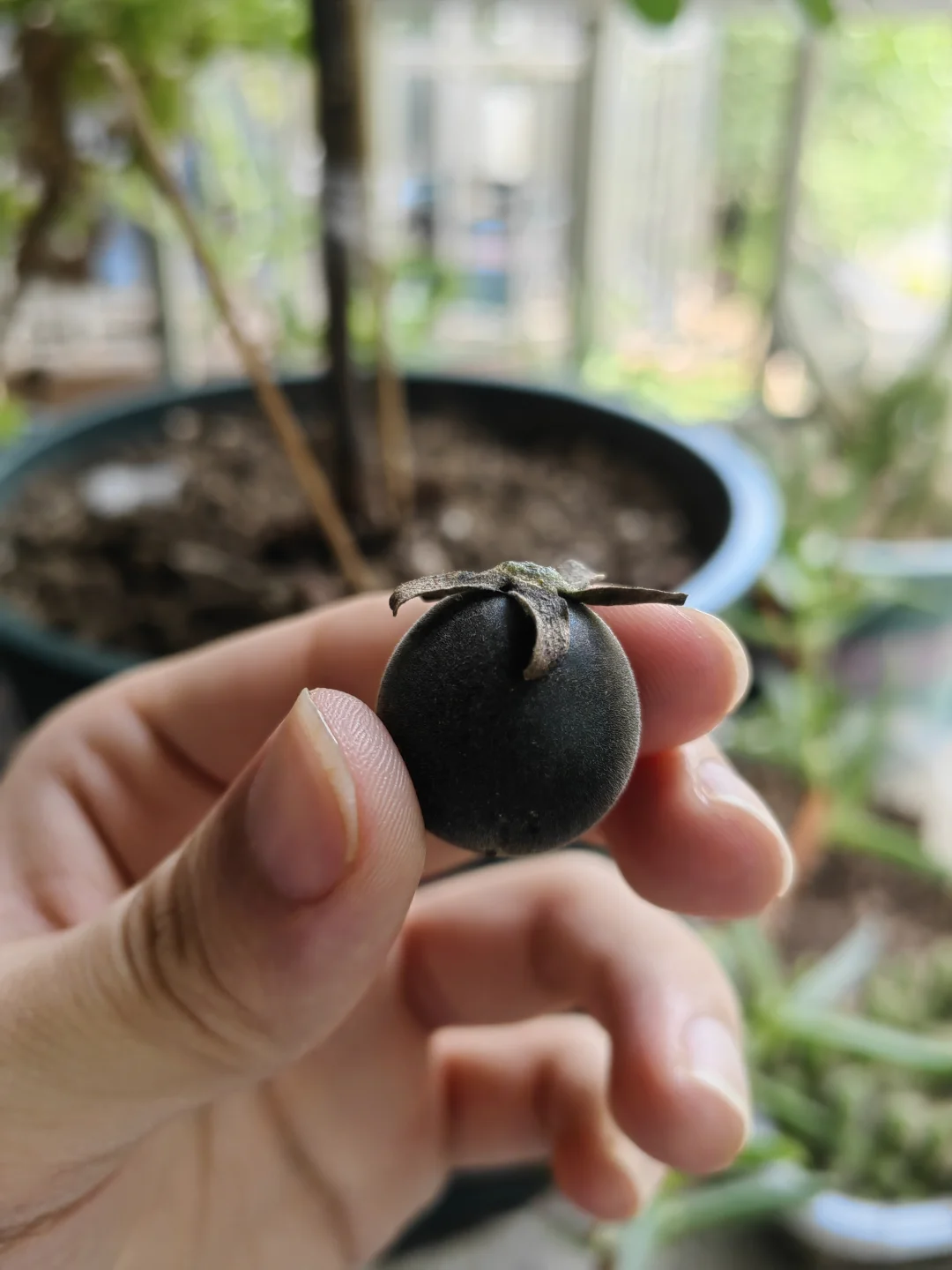 母树嫁接的盆栽德州小柿子熟了,尝尝还可以大,有点甜度,好处是没有柿子的涩味熟了就可以直接摘下来吃,缺点是没什么肉,不过小小的很可爱,又能看又能吃[大笑R]