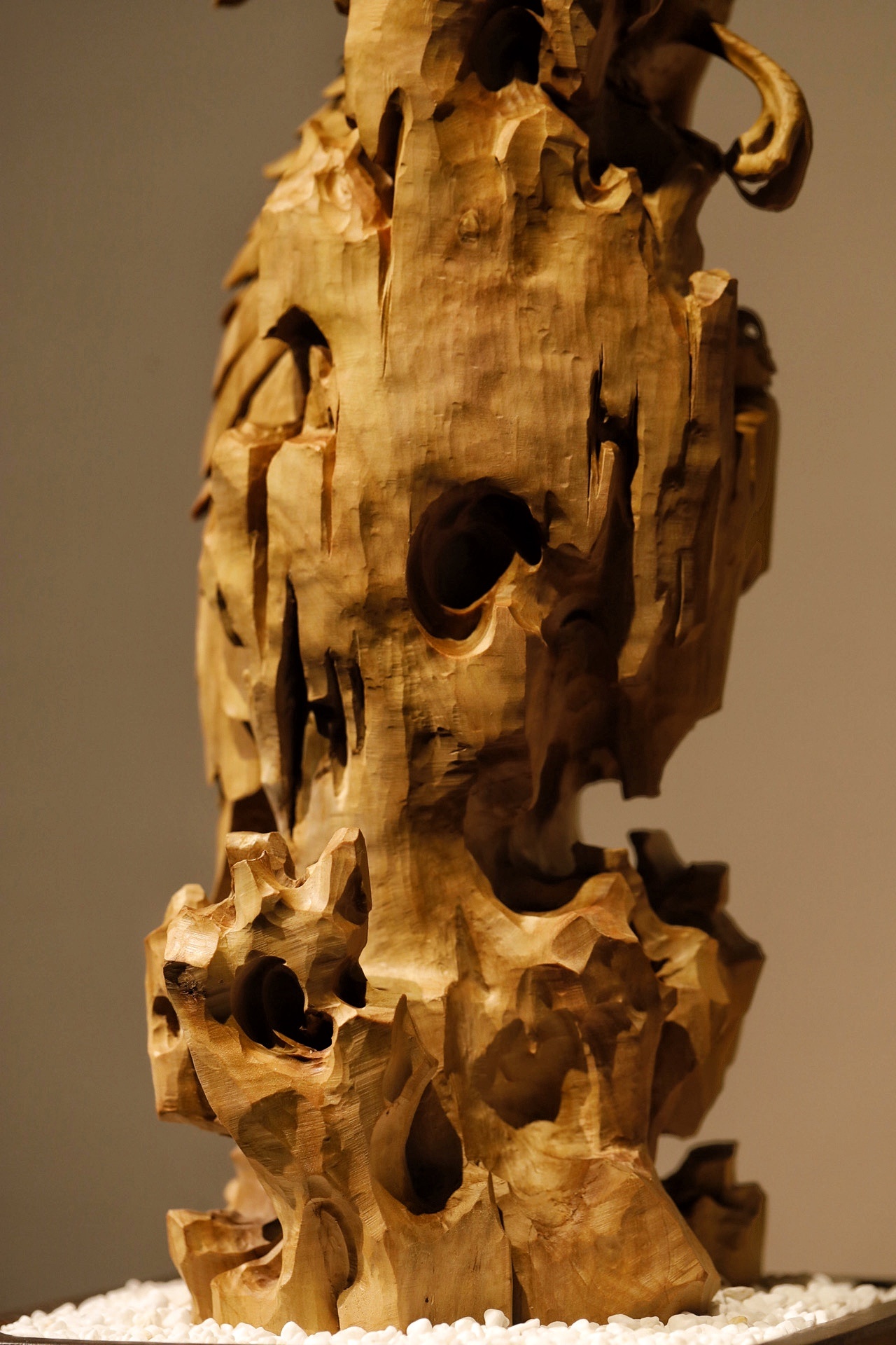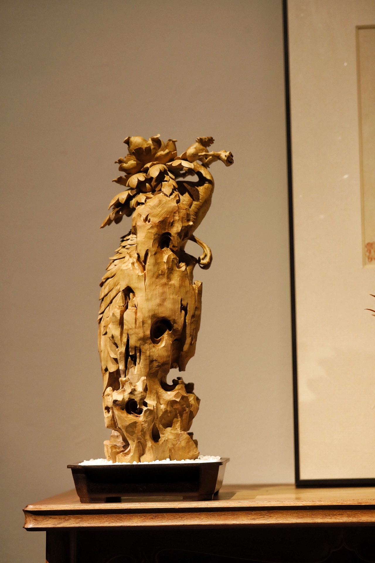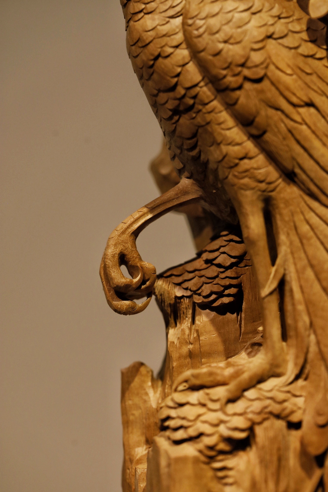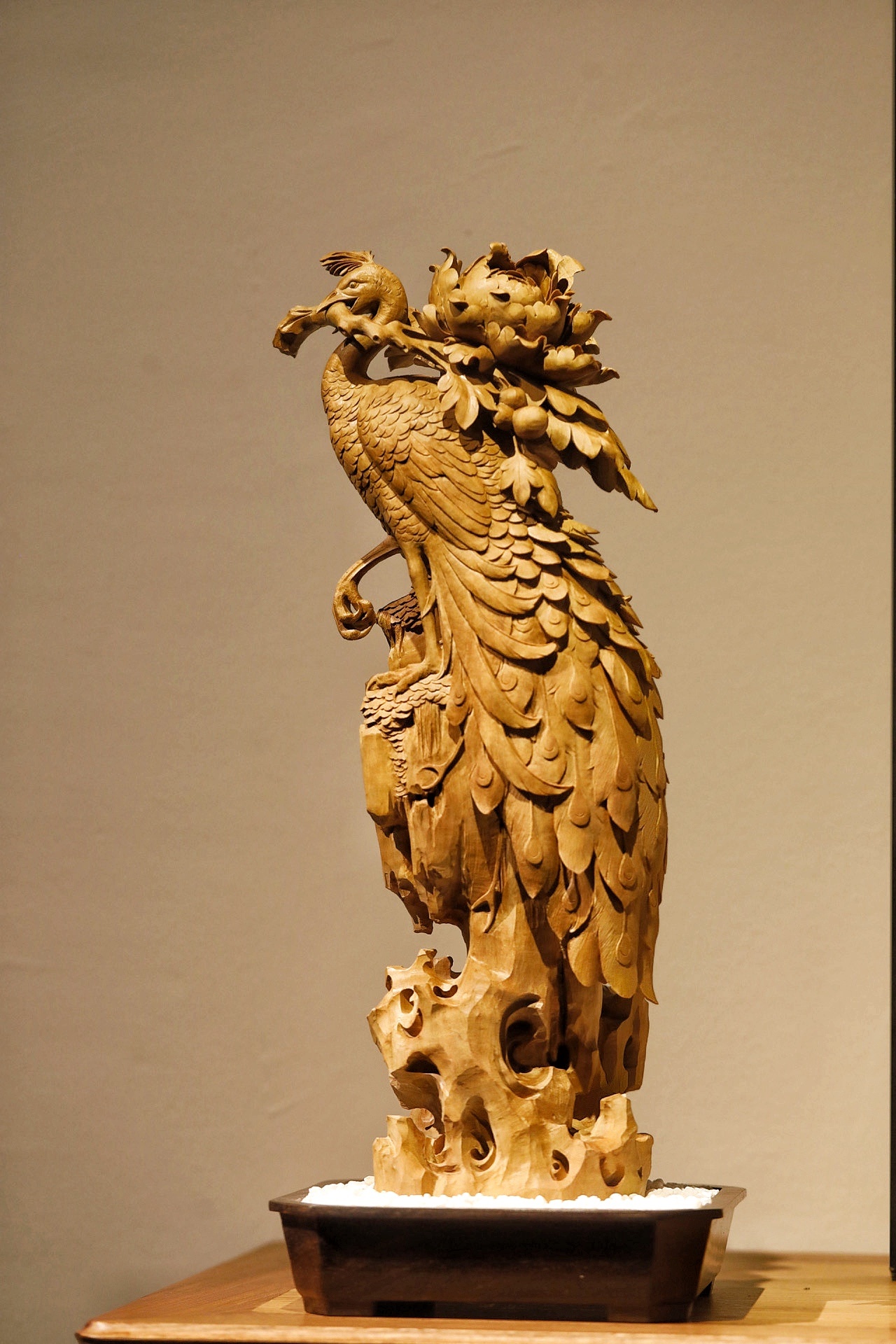 老山檀香|富贵吉祥·案摆檀香肌理凝润,整料雕孔雀立崖:孔雀首衔花枝,背拥牡丹团簇,尾羽如金缕铺展,每片翎眼都刻得灵动鲜活;牡丹瓣叠如锦,与雀羽缠出富贵相,崖基卷纹裹着吉意——雕的是孔雀栖春,藏的是“富贵随身”,檀香漫处,祥光暗生。整体规格:18×19×45cm重量3233g