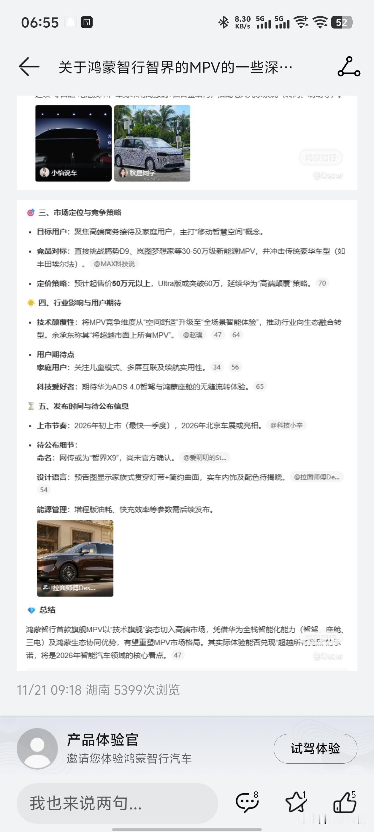 智界V9官方就说价格是50万以上,ultra会破60万,一来就是最高端的MPV,估计后面可能会有V8,V7之类的再把价格降下去吧