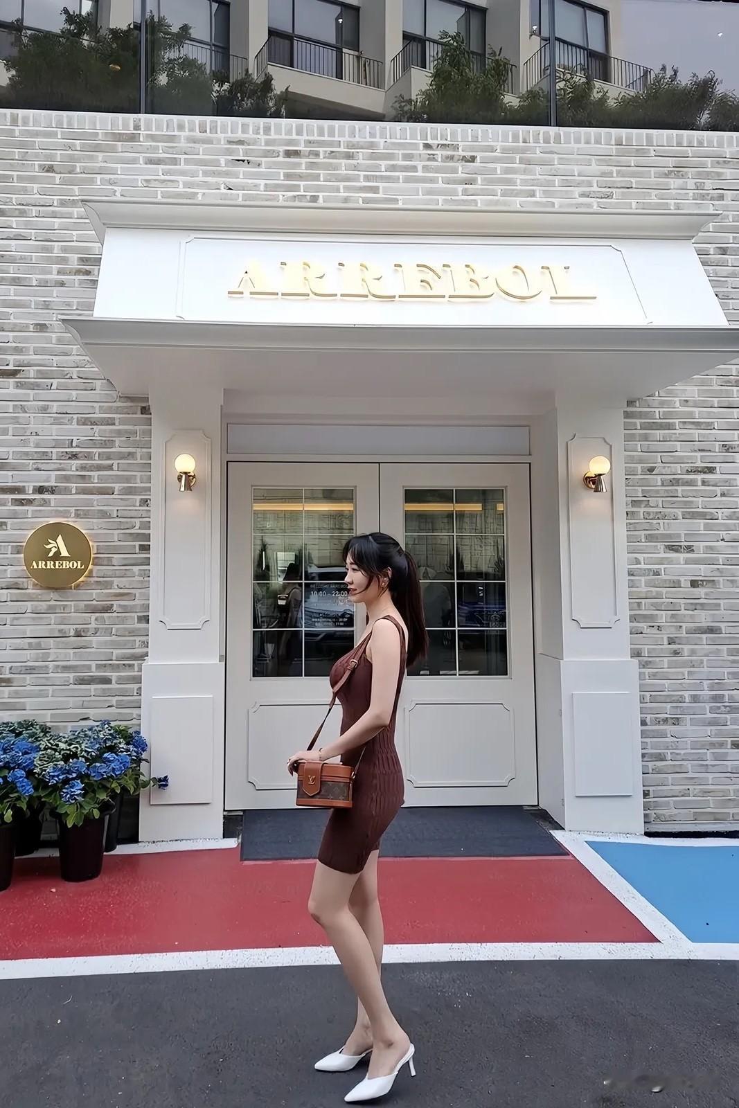 一位美女在Arrebol门口拍照。