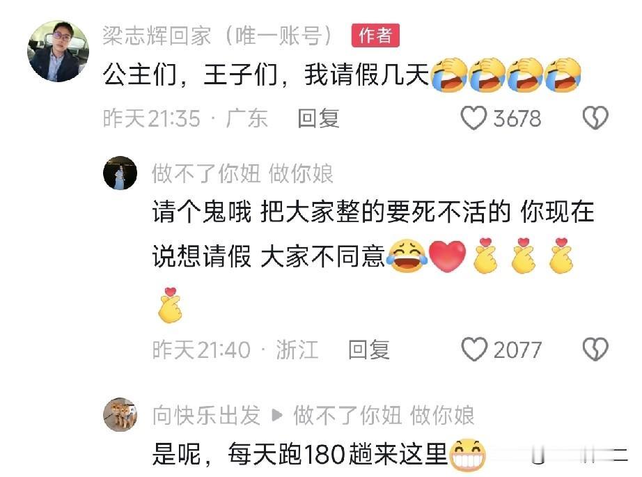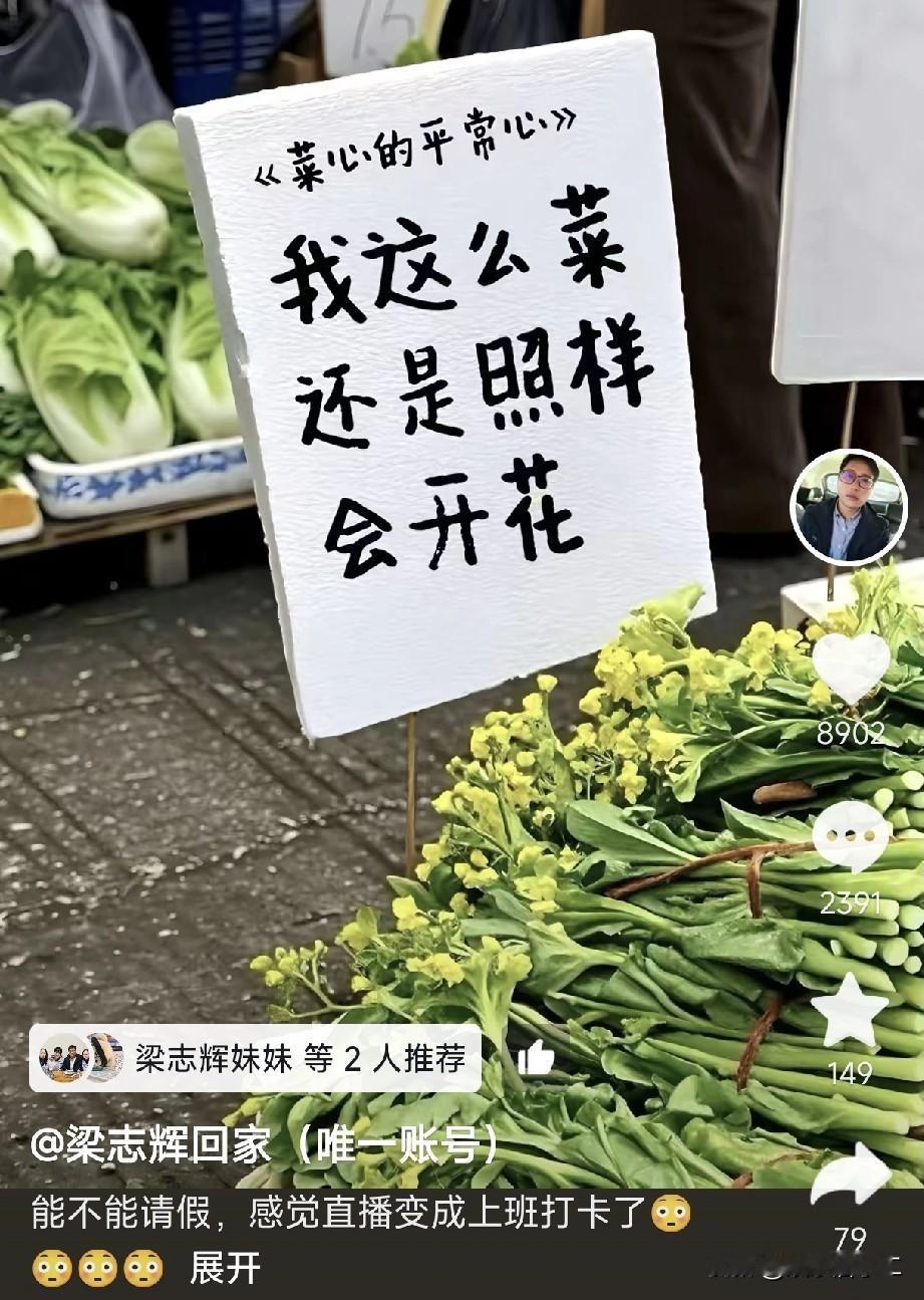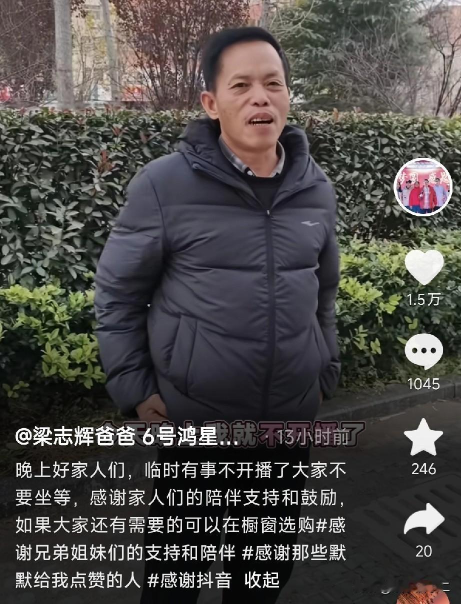 难怪梁志辉要停播几天,原来他的养父母来潮州看他了,巧合的是,梁爸也突然宣布停播,很可能是要处理老家的“羊肠小道”。 梁志辉要和大家请假两天,还在评论区里说道“公主们,王子们,我请假两天”,但并没有说因为什么请假。 而一位当地的网友说,前天晚上5点在菜市场看到梁志辉的媳妇儿和他的养母一起去买菜,一个提着水果,一个提着蔬菜。 梁志辉的养父母费尽心思拐来孩子,想让他们放手肯定不死心,想通过多走动来增进与梁志辉之间的感情。 突然一下就让梁志辉和养父母之间断了联系也不可能,毕竟这么多年感情了,不过现在可以看出,梁志辉已经完全认可亲生父母了。 他不仅刚认亲完就去直播间支持梁爸,频繁的和姐姐妹妹互动,还送弟弟礼物。 看来血脉亲情是割不断的。 梁爸这边也有新的情况,本来约好在9号晚上直播的,却突然宣布停播。 很多人怀疑和他家进出口的那条火了的“长城路”有关,肯定是去解决这件事情了。 抓紧快把这条网红路的事情处理了吧,现在梁志辉爸爸主要的任务就是好好直播带货,别被那些细枝末节的小事影响。