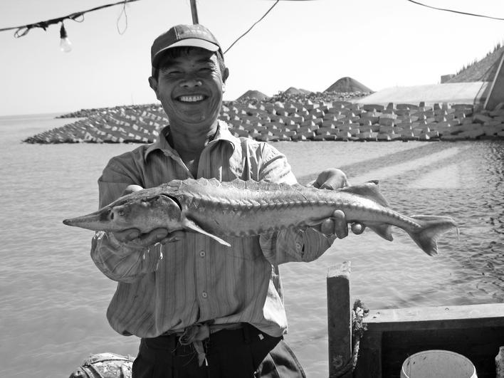 年轻人的父亲、今年58岁的施渭金接过话茬:“我打鱼40多年了,放生过十多条中华鲟,最重的一条有50多公斤,抱都抱不动。”