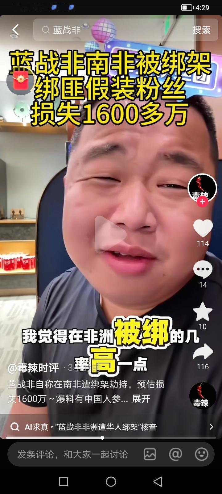 昨天看到蓝战飞在南非开普敦某酒店遭敲诈勒索的信息,今天早上再次搜索看了一下,这次各大官媒都没有跟风报道,我觉得做的挺好的,点个赞。一直以来,官媒发布的信息在我们国人心中那都是权威的,准确的。你发布的不实信息次数多了之后,只会降低你自身的影响力。蓝战飞这事目前网上只有他自己自述的一个过程文章,小圈子内传播。这事又 发生在国外,要想核实事情的准确性,其实挺难的,而且要不短的时间。最后还是提醒出国旅游一定要注意自身的安全。(图片信息来源:毒辣时评)在南非应如何选择安全的住宿环境 蓝战非 蓝战非被绑架 蓝战非旅游记录 蓝战非旅游刺客 国外旅游 蓝战非收入