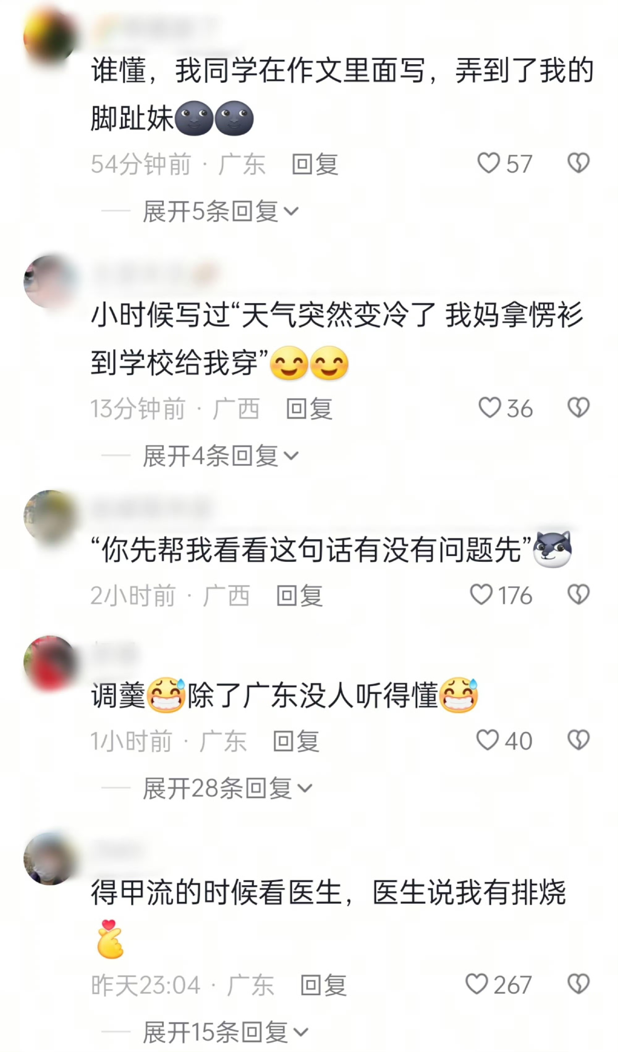 小时候写过“天气突然变冷了,我妈拿愣衫到学校给我穿”