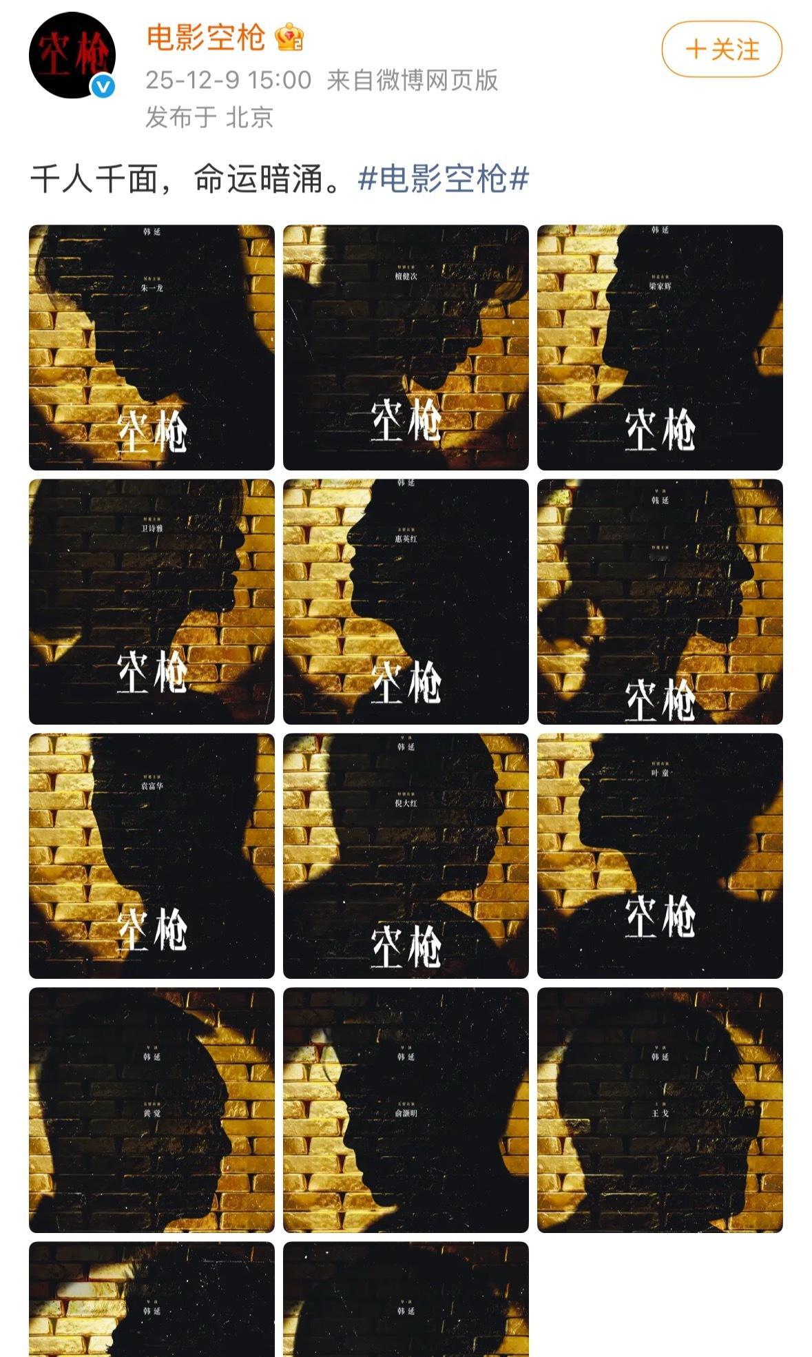 空枪 影帝影后团建朱一龙、檀健次、梁家辉、为诗雅、惠英红……《空枪》你这个阵容拿