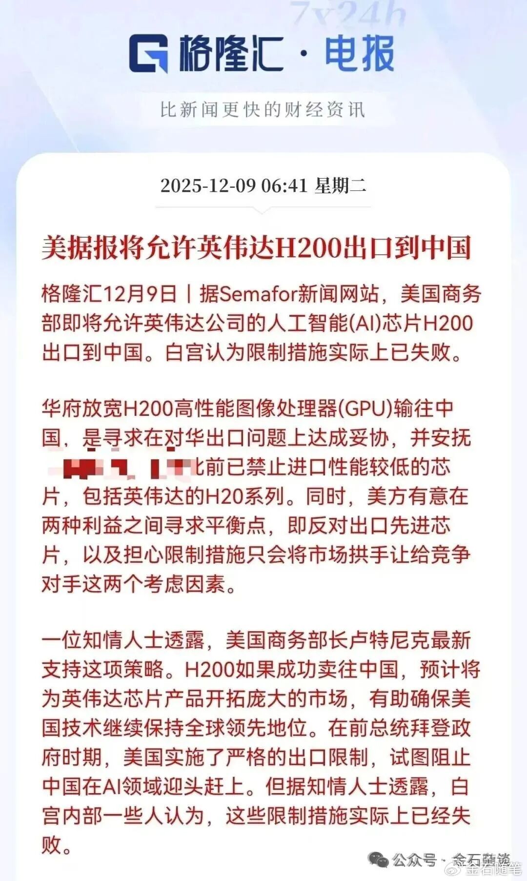 据Semafor新闻网站,美国商务部即将允许英伟达公司的人工智能(AI)芯片H200出口到中国。白宫认为限制措施实际上已失败。