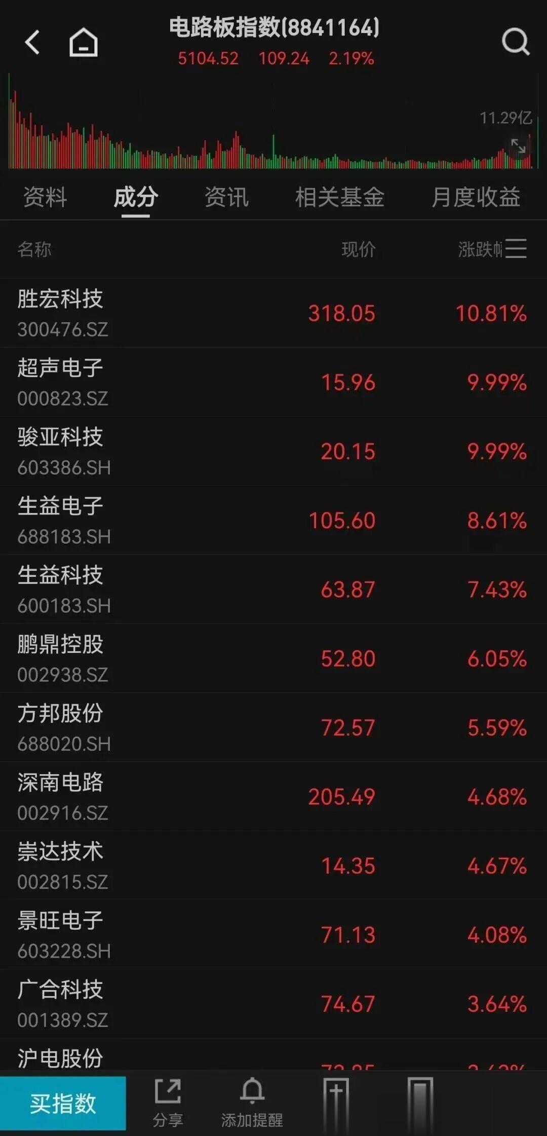 与此同时,近期大幅调整的电路板指数大幅反弹,尤其龙头胜宏科技大涨10%。