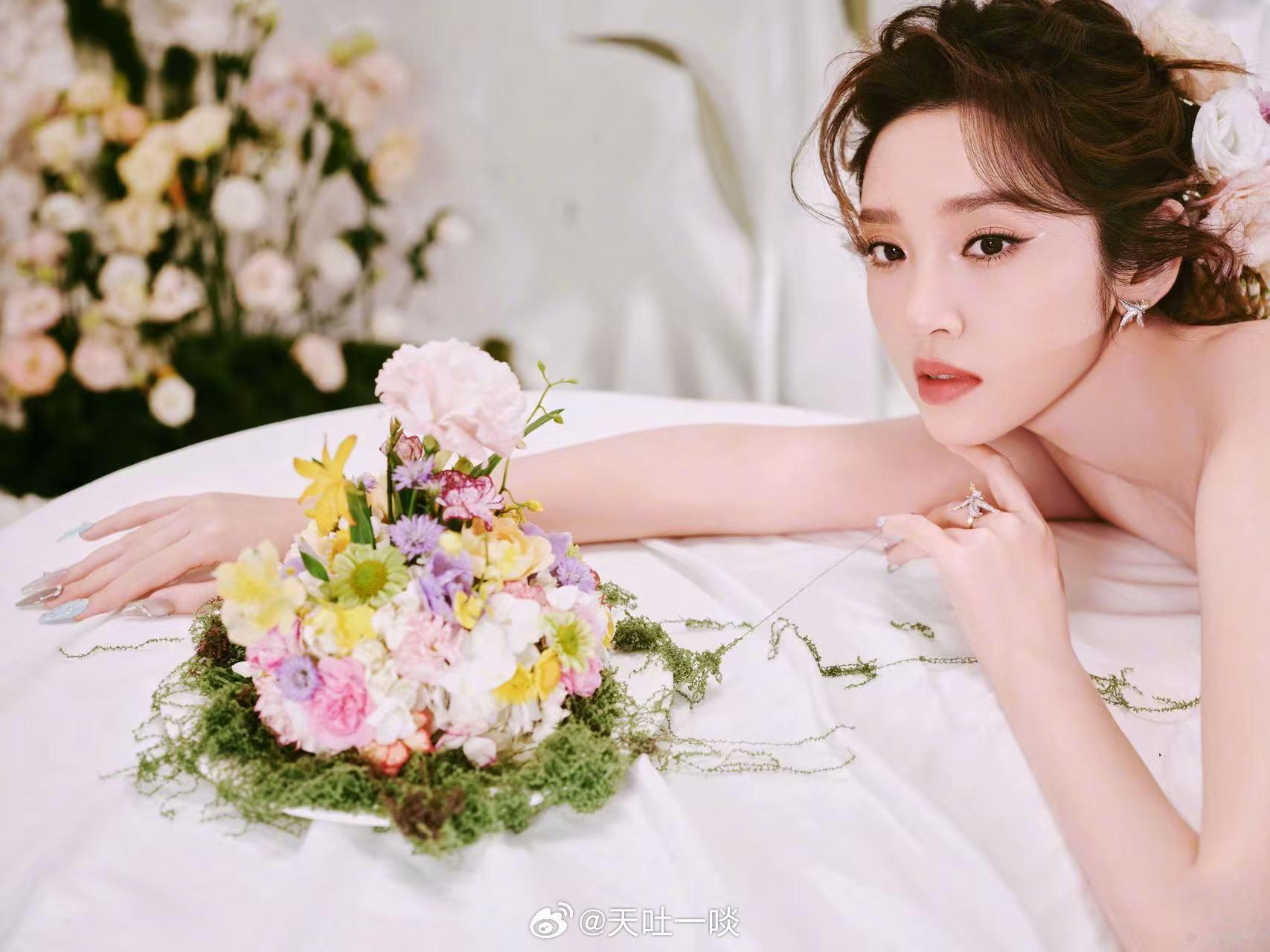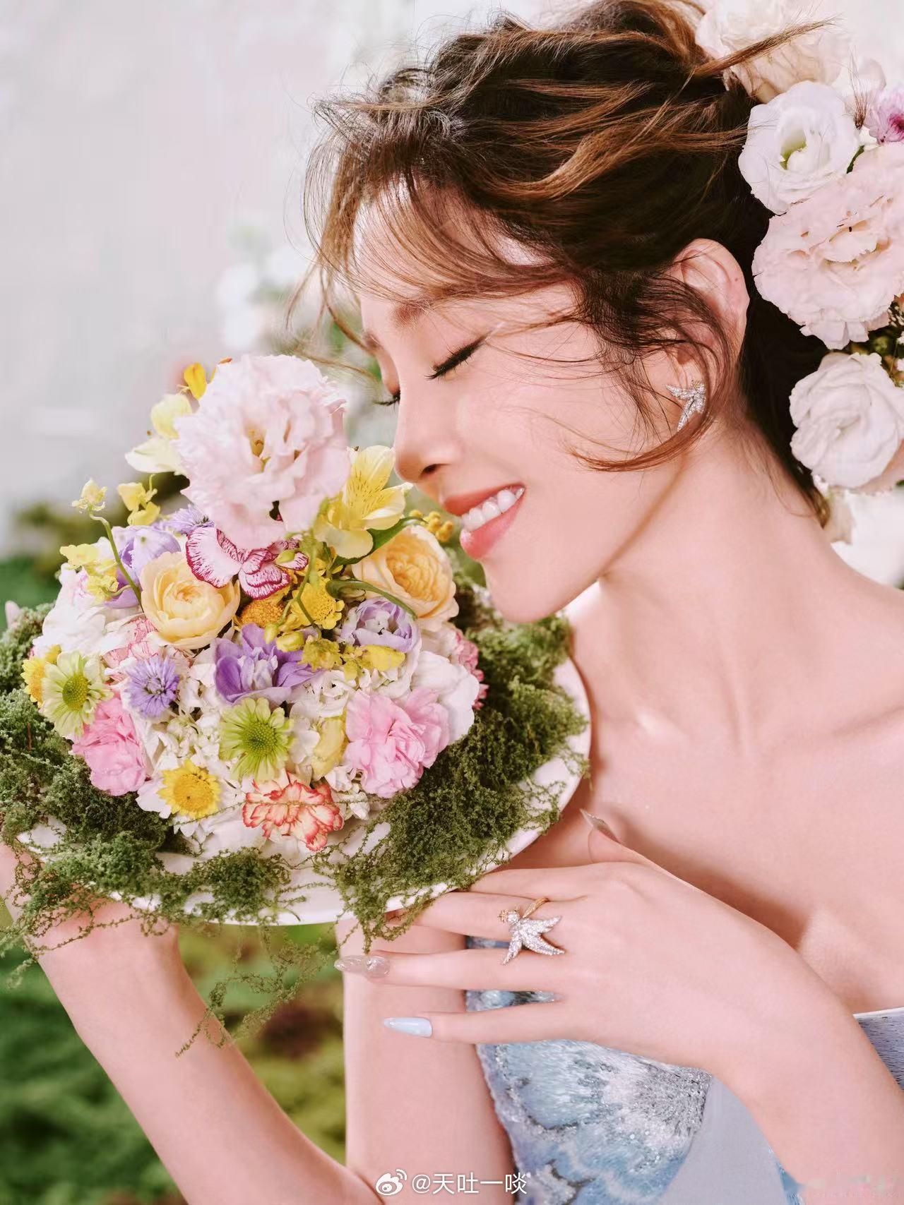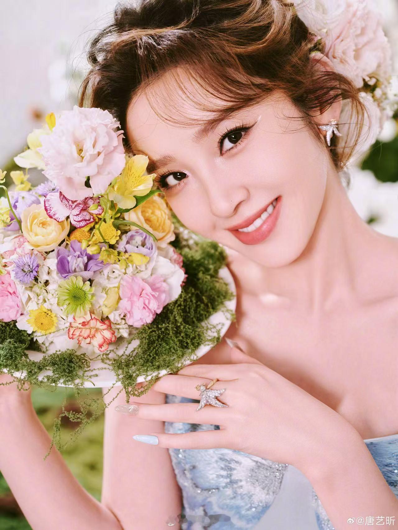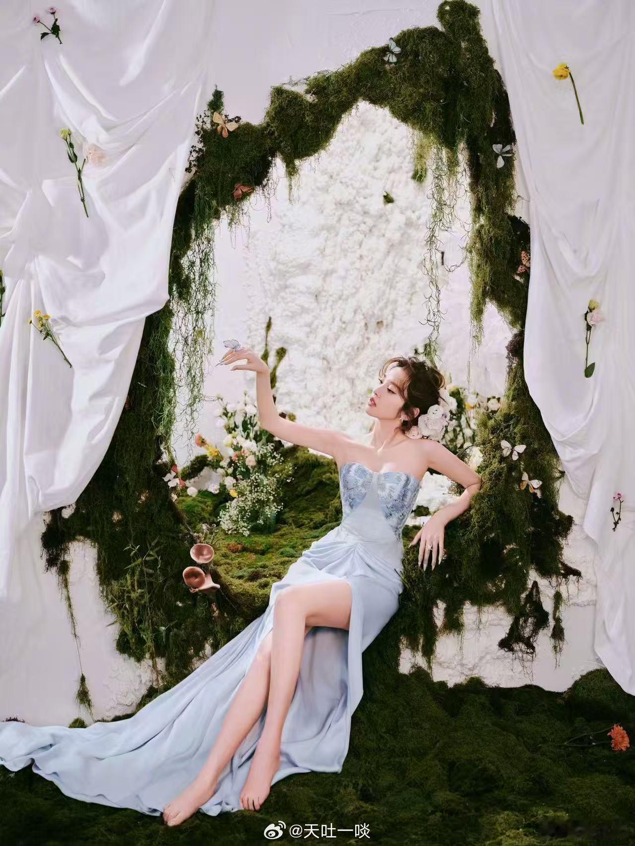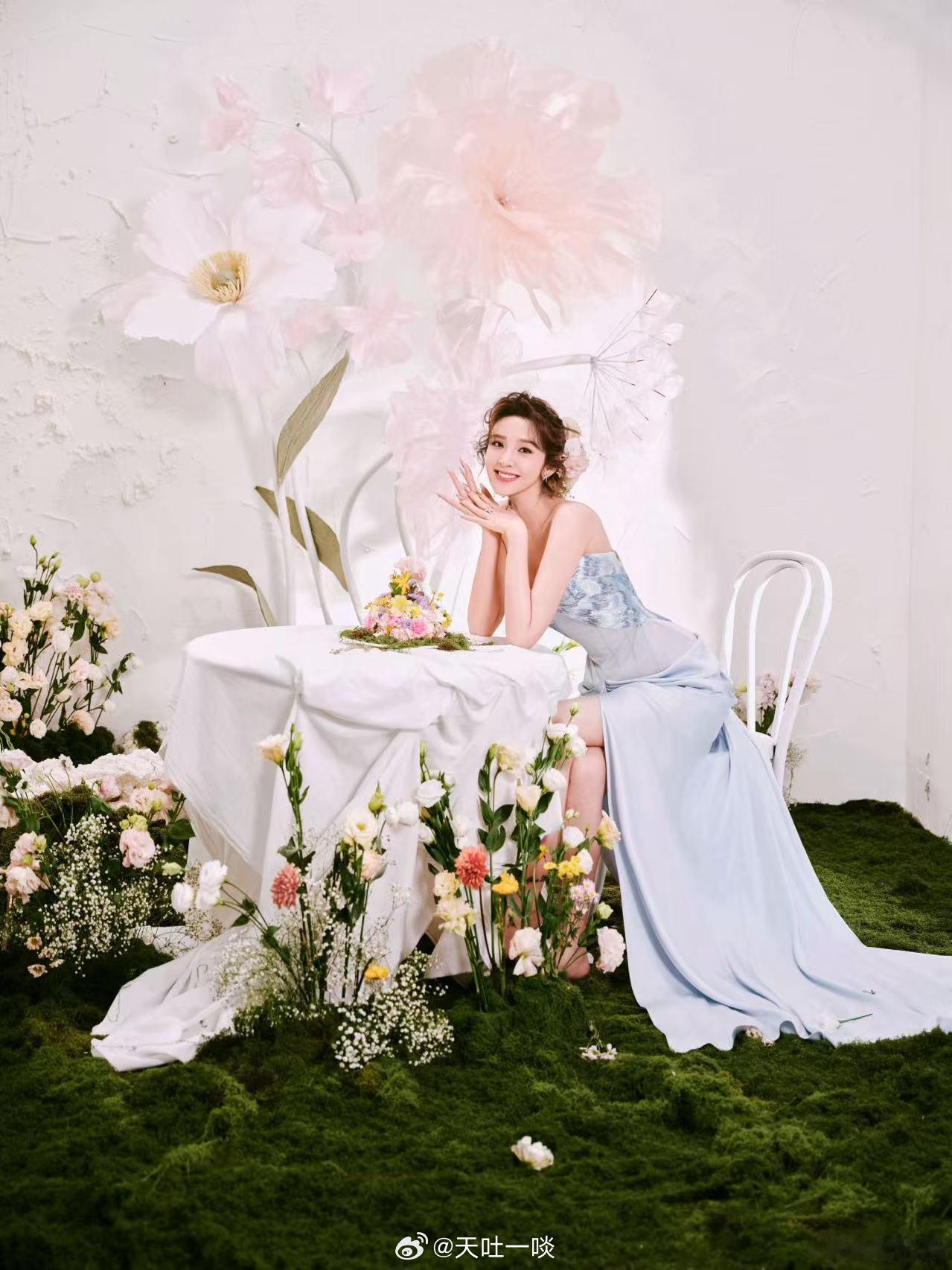 浅蓝色抹胸礼服明媚动人——唐艺昕。每日明星美图分享