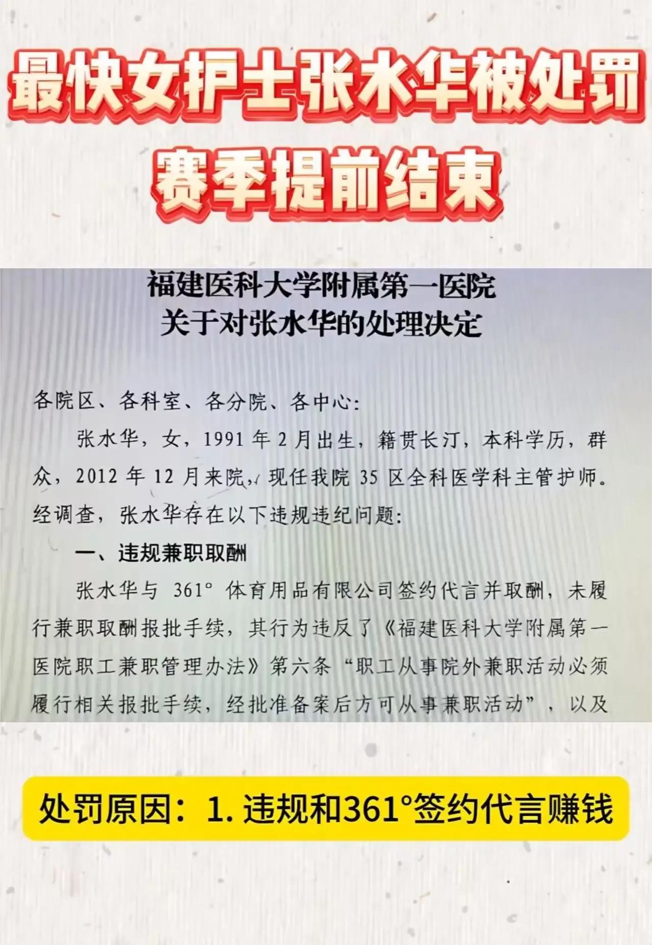 “最快女护士”张水华竟然被医院警告处分了!这究竟是怎么回事?难道是因为她跑得太快,医院怕她“跑”出问题? 原来,医院给出的理由是张水华存在违规兼职取酬、以虚假理由获得调休的行为。这一消息一出,网友们瞬间炸锅了。有网友表示,张水华作为业余选手,能在体育领域取得如此优异的成绩,实属不易,是业余选手中的翘楚。医院作为她的工作单位,本应该给予她更多的支持和鼓励,而不是在她取得成绩后,却以这样的理由对她进行警告处分。也有网友认为,无论成绩如何,违规兼职和虚假调休都是不对的,医院的处理是合理的。不过,更多的网友还是倾向于支持张水华,认为医院应该更加人性化地处理这件事情,毕竟她的体育成绩也是为医院争光的一种方式。 张水华的遭遇引发了网友们的广泛讨论,无论结果如何,我们都希望她能够继续保持对体育的热爱,同时也希望医院能够更加公正、合理地处理此类事件。对此,你有什么看法呢?快来评论区留言吧!张水华夫妇 福建最快女护士 张水玲