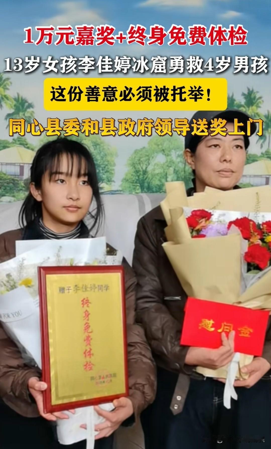 宁夏最美女孩:李佳婷冰窟救人的勇敢和救人不留名的低调都值得点赞。但大家热烈的关注,可能已经打扰到她。 值得赞扬的 勇敢无私:她当时说“我身体轻,我下去救”,并冒险施救。 低调善良:救人后她默默离开,回家还谎称衣服是“洒水车洒的”。 获得嘉奖:她已被评为“新时代好少年”并获得表彰。 需要警惕的 家长担忧:她母亲既骄傲又心疼,希望孩子“先保护好自己”。 安全第一:班主任强调,未成年人的“生命安全始终是第一位的”。 最好的支持,不是持续聚焦她个人,而是学习她的善意,同时把平静的生活还给她,让她能安心成长。