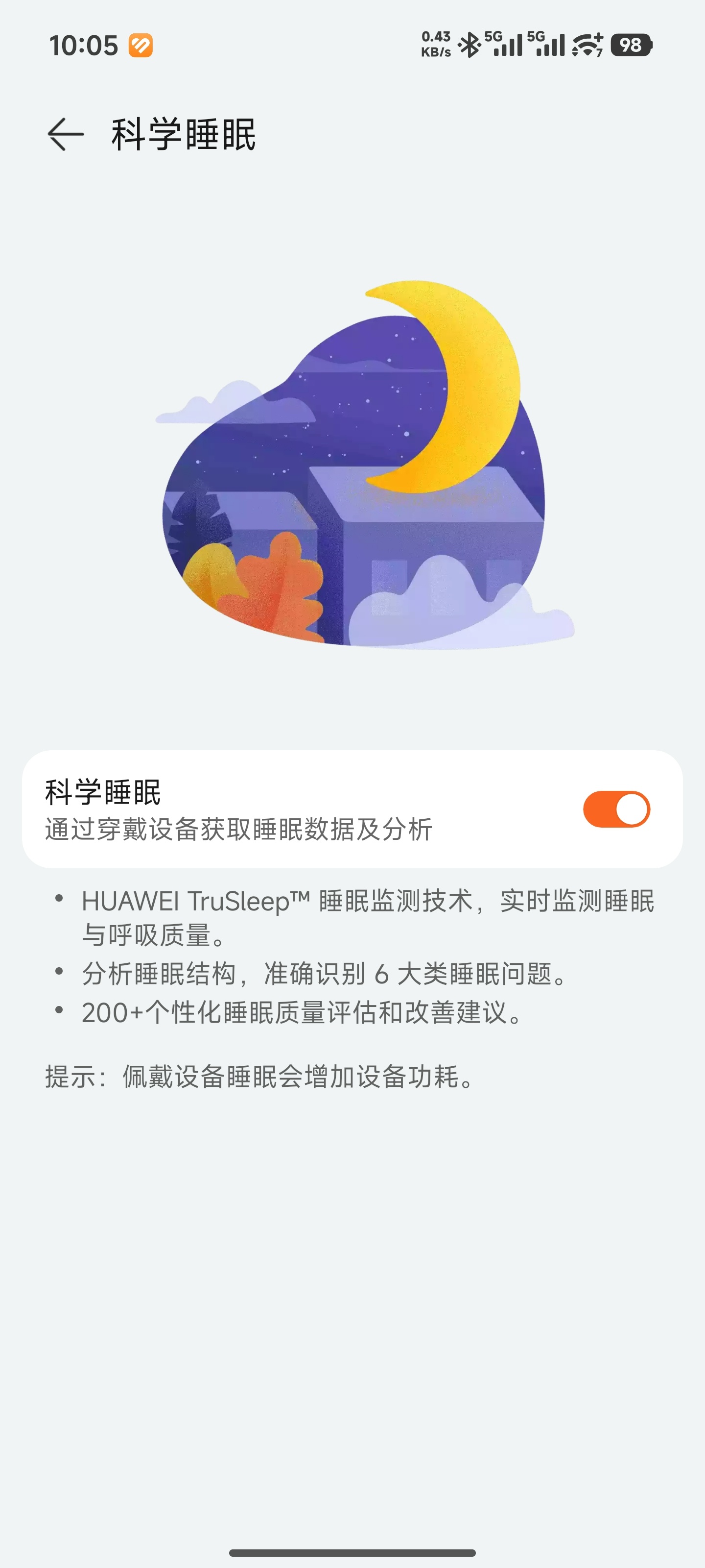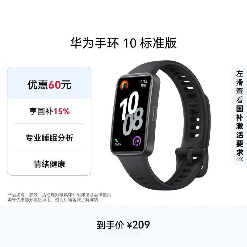 开了个某东二手的95新华为手环10。尺寸其实更小巧了,功能多了情绪健康和早博筛查。表盘不能和旧的通用。华为创新研究不要安装,因为全部功能都不支持。提示安装折腾半天纯属瞎搞。有一个挺有意思的功能就是睡着20分钟自动关闭助眠设备。不知道助眠设备是什么,如果开放接口就好了。比如关闭APP。我睡前经常刷视频,睡着就响一夜华为的健康功能还是比其他好用的,运动数据也更细。很多不需要技术的功能大家都能实现,但真要比技术积累的时候,华为还是强。 华为(HUAWEI)手环10 标准版 曜石黑 智能手环专业睡眠分析情绪健康心...