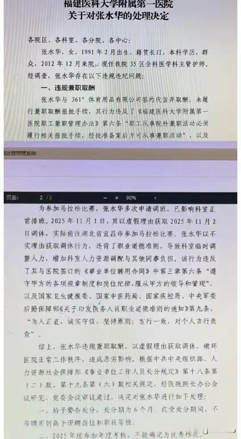 张水华跑得比风快,却摔在医院这道坎 凌晨四点的福州,闽江潮水拍岸,像无数计时器在同时滴答。张水华换好跑鞋,沿着解放大桥往返冲刺,十公里配速三分四十——比大多数男选手还狠。她告诉自己:再快一点,就能冲破那层看不见的网。四个月后,她确实在哈尔滨马拉松冲线夺冠,却也在同一瞬间撞进另一张网:体制、伦理、人情与流量的纠缠。那张网没有弹性,只有冷冰冰的金属光泽,把她从云端拽回地面,摔出一纸警告:违规兼职、虚假请假,处分六个月,取消全年评优。风还在吹,跑鞋还在墙角,可“最快女护士”的故事,已经换了叙事主角。 一、27 次请假漏洞:科室排班如何被“配速”击溃 心血管内科的排班表,像一张精密的洋流图:42 张床位、410 日均门诊、1 医 2 护夜班,任何错位都会掀起人力海啸。张水华 2025 年累计 27 次调休,其中 11 次以“奶奶病危”“孩子家长会”为由,实际轨迹却与全国马拉松日历严丝合缝。系统后台闪着红灯,科室主任却一次次人工消音——“人家是冠军,别让医院上热搜”。直到 11 月 1 日,“奶奶病危”再次出现在流程单,同一时刻,宜昌赛道上她刷新 PB 的微博定位被同事截图,信任大坝轰然崩塌。替班的怀孕护士在病房连轴 14 小时,患者呼叫铃与心电监护同时报警,那一刻,速度的美学与医疗的安全被放在天平两端,后者输了。 二、20 万奖金与 361° 合同:公立医院薪酬天花板被谁掀翻 张水华与 361° 的代言协议签署于 7 月 15 日,三页 PDF,清晰地写着:赛季形象使用费 15 万、成绩激励 5 万、社交媒体带货分成 10%。而医院人事系统里,她的兼职审批栏空白。违规吗?制度说“必须事前报批”;市场说“机会窗口只有 48 小时”。福建三甲主管护师年绩效约 7.8 万元,一场马拉松冠军就能翻倍,换作谁,内心都会打算盘。公立医院薪酬体系自 2017 年“九不准”后,阳光收入涨幅有限,灰色空间被挤压,于是“流量溢价”成为新大陆。张水华不是第一个登岛者,却是第一个被灯塔照到的。她的摔倒,让所有人看见:旧薪酬与新经济之间的裂缝,已经宽到可以掉下一个人。 三、流量人设与专业身份:白衣标签为何不能被无限消费 护士与跑者,两个身份在张水华身上重叠,本应互相赋能——她曾在赛后直播科普“心脏骤停如何按压”,单场点赞 200 万。但当“最快女护士”成为品牌招商 PPT 的封面,专业身份就被悄悄兑换成注意力筹码。医疗行业的核心资产是信任,信任的产生机制是“边界感”:边界让病人愿意把生命交给陌生人。张水华用“奶奶病危”换赛道照片,等同于亲手拆掉那道墙。墙外,361° 获得爆款故事;墙内,患者开始质疑:“上次给我打针的,会不会也心思在马拉松?”一次越界,消费的是整个群体的信用余额。处分书下来,品牌方秒删海报,粉丝群解散,流量潮水退去,裸泳的是谁,一目了然。 四、制度补丁:三家医院的“网红”试验田能给我们什么启示 北京协和医院把“网红医生”纳入科普 KPI,广告收益 60% 归科室科研基金;华西医院设“赛季窗口”,统一备案,奖金 10% 反哺同事加班补贴;深圳人民医院与品牌共建“阳光合同”,法务审核、院内公示,代言费照拿,却无一人违规。三张处方,共同的药引是“透明”——透明让市场激励与职业伦理从对立变协同。张水华事件后,福建医大附一连夜修订《职工兼职管理细则》,新增“体育赛事负面清单”与“虚假请假黑名单”,但制度只解决 0 到 1,真正的 1 到 100 需要文化土壤:让同事敢于说“不”,让领导敢于“得罪人”,让违规成本高于流量收益。否则,下一个张水华,只是换了一双更快的跑鞋。 五、终点之后:让专业归位,让热爱继续 哈尔滨终点线,张水华曾哭着说:“我只是想证明,护士也能跑向世界。”那份眼泪是真的,可惜世界回赠她的,先是鲜花,后是荆棘。医疗行业不需要悲情英雄,也不需要流量宠物,它需要守规矩的手艺人。跑鞋可以留在更衣室,热爱可以继续燃烧,但必须先学会在制度跑道里热身。医院处分不是句号,而是一个冒号:后面等着看,她是否能把罚款交完、把夜班补回、把科普直播重新做成无商业掺杂的公益;也等着看我们,是否愿意给合规的“白衣跑者”更多掌声——哪怕他们跑得比风慢一点,却不会再被自己的影子绊倒。 风还在吹,闽江潮水依旧。张水华的故事,终将被下一个热搜覆盖,但裂缝一旦照进光,就不会轻易合上。愿所有在病房与赛道之间摇摆的人,记得:专业是根,流量是翼,根不枯,翼才能飞。别让下一次冲线,再摔在医院这道坎。 张水华夫妇 张水玲 张水水 张水英 张水清 张水莲 张咏华