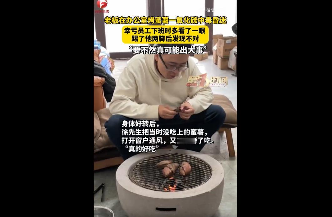 12 月 9 日采访,山东青州一老板在办公室烤蜜薯一氧化碳中毒昏迷,员工徐先生下班时因没听到日常招呼多看一眼,踢了两脚发现异常后施救。 老板清醒后直冒虚汗、走不了直线,事后致谢并承诺烤地瓜开窗。 网友赞员工细心,还称融洽职场氛围是关键。 这事儿看着暖,实则戳破不少职场真相! 要是遇上层级森严的破公司,员工哪敢 “踢老板两脚”? 早怕被穿小鞋躲得远远的,老板怕是要凉透! 还好这公司氛围没那么官僚,员工敢上前查看,老板事后也不摆架子,这才捡回一条命。 再说那员工,多留一眼、踢两脚,看着随意却是救命关键! 反观现在很多人,下班就揣着手机埋头走,连身边人不对劲都瞅不见。 还有老板,烤蜜薯都不知道开窗,心也太大了! 这事儿就是提醒:职场别搞破层级,生活多留点心眼,不然意外来了都没辙! 真该让那些摆谱的老板和冷漠的打工人好好学学!