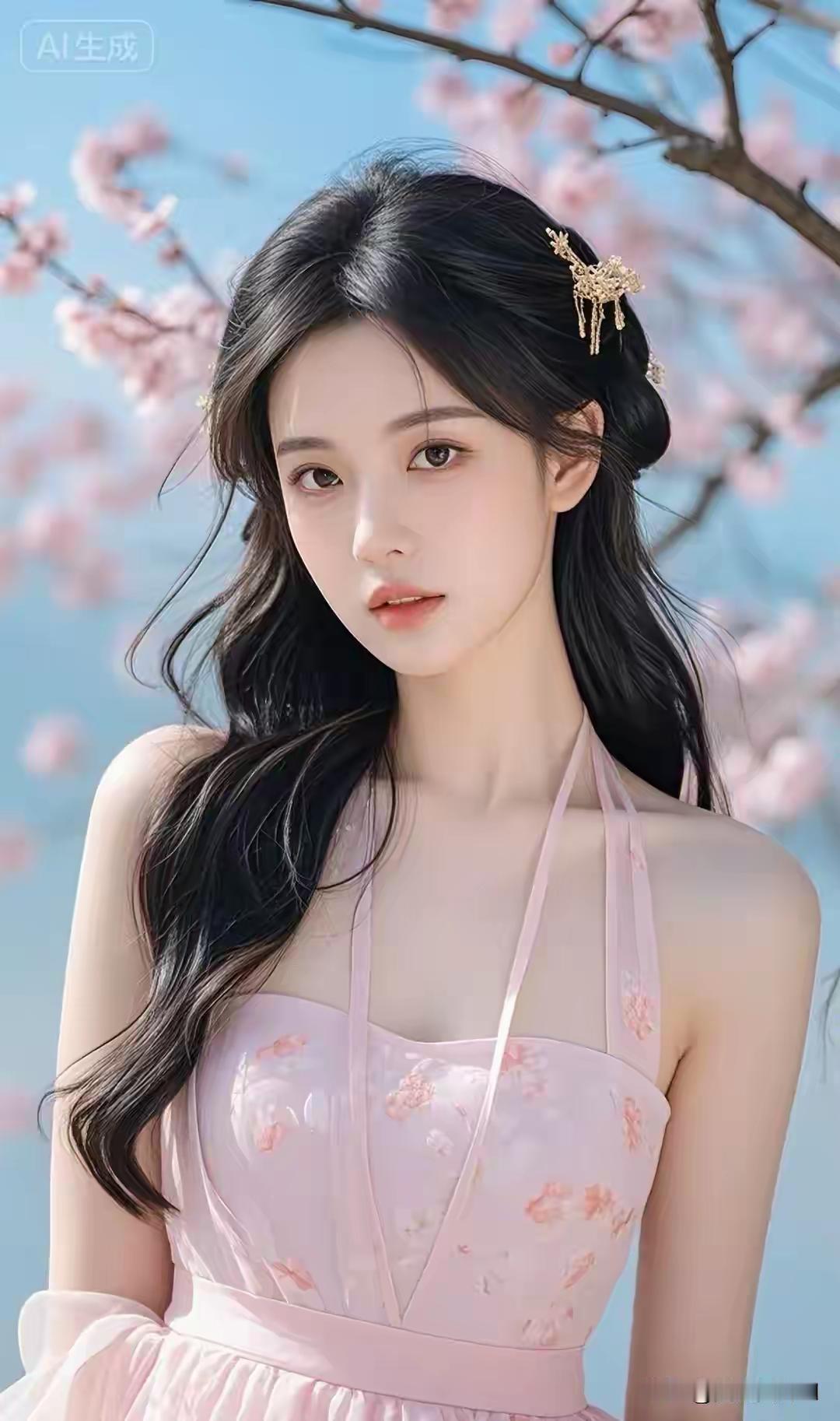 樱花树下,温柔少女,粉色花裙,梦幻唯美晒出一张自己喜欢的照片 上联:白露凝珠滴秋水,邀请下联