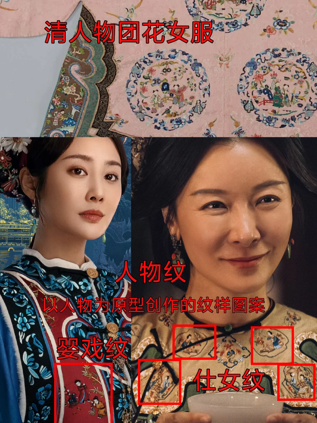 ✅苏紫轩衣服上为婴戏纹,晋大 奶奶云肩上为仕女纹。