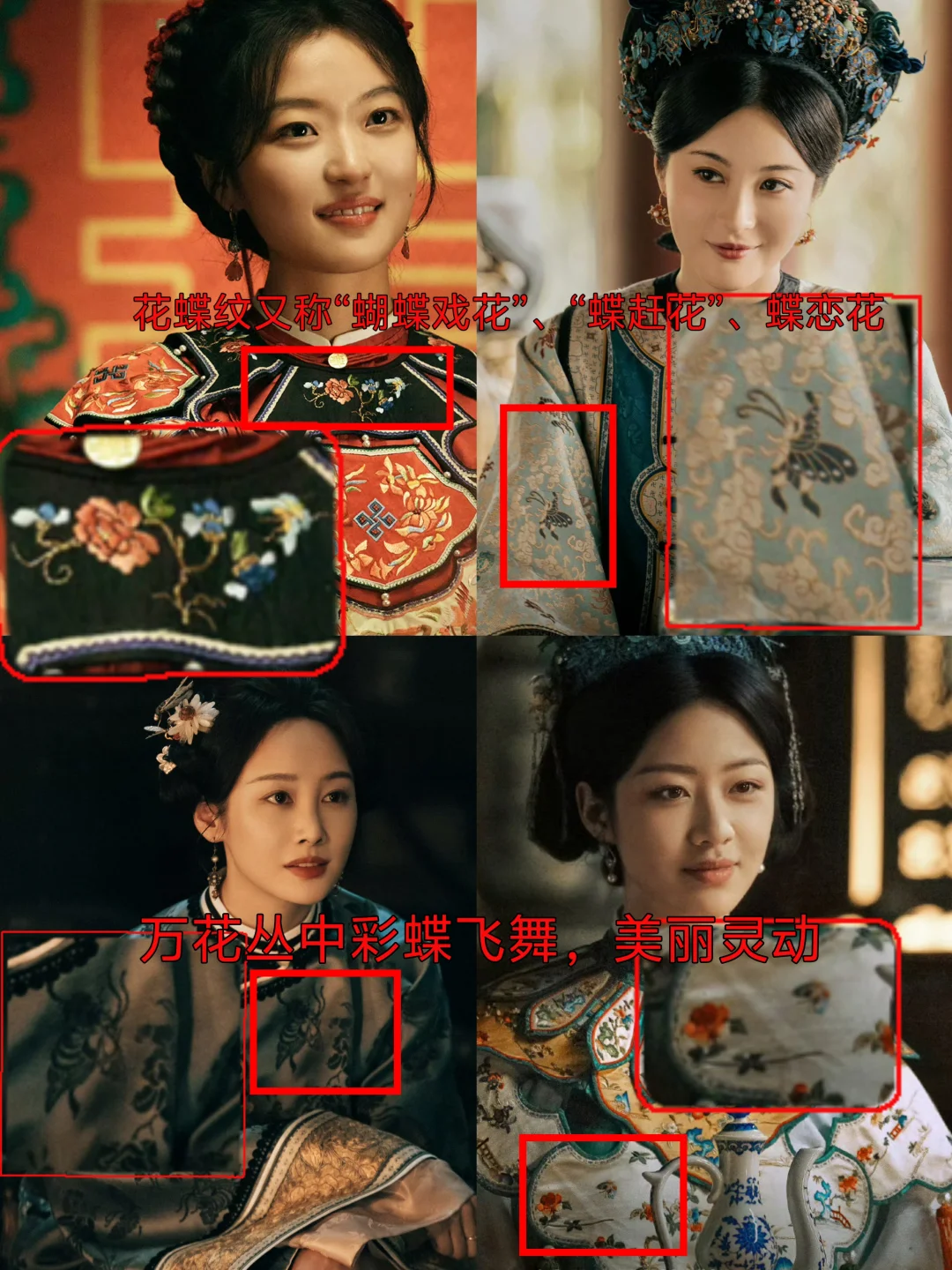 ✅花蝶纹多出现在剧中女子衣服上,万花丛中彩蝶飞舞,美丽灵动。