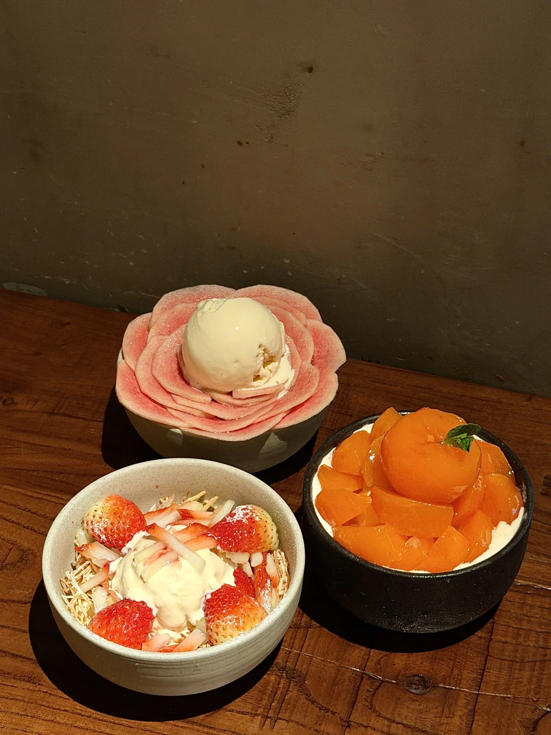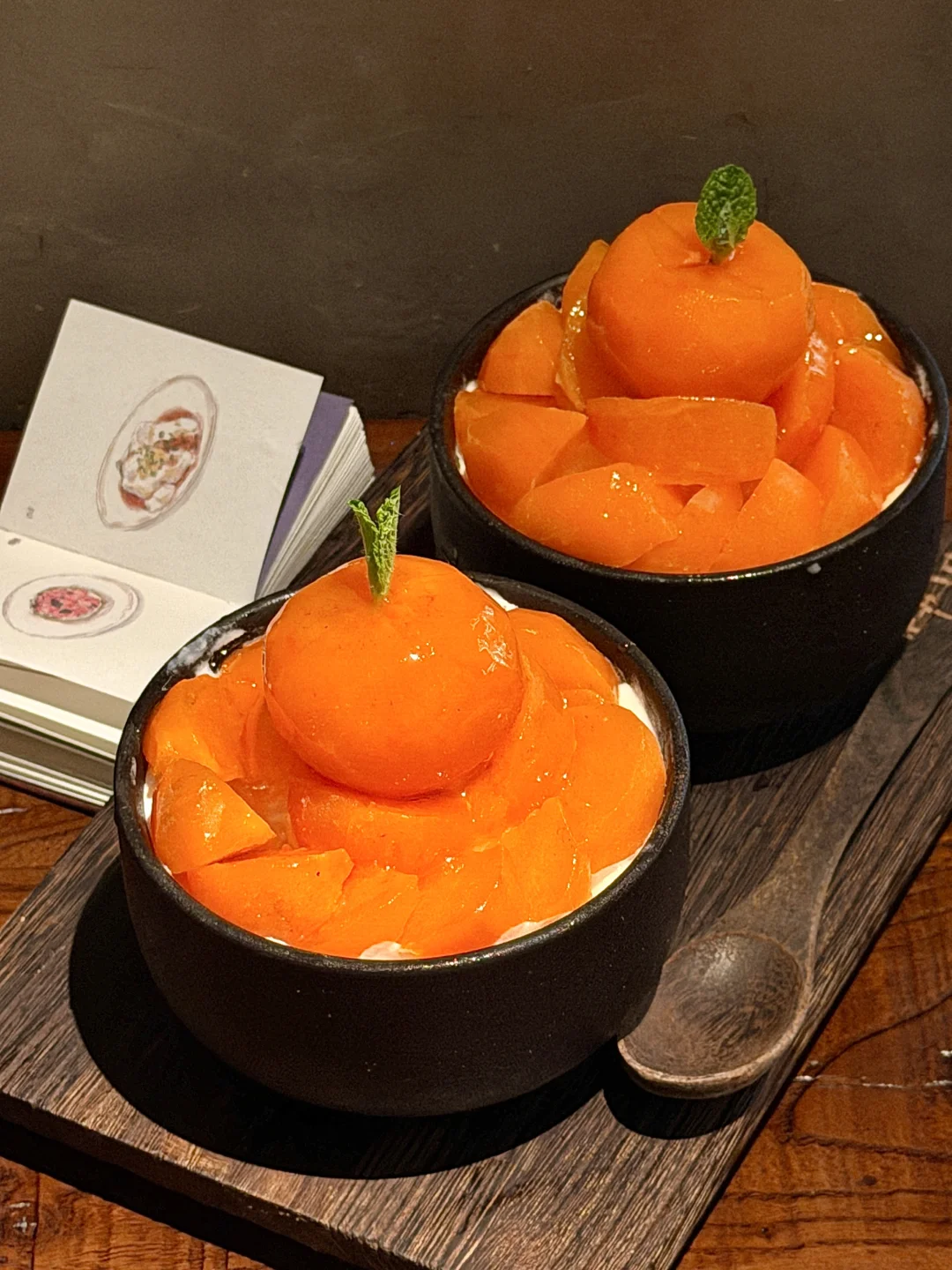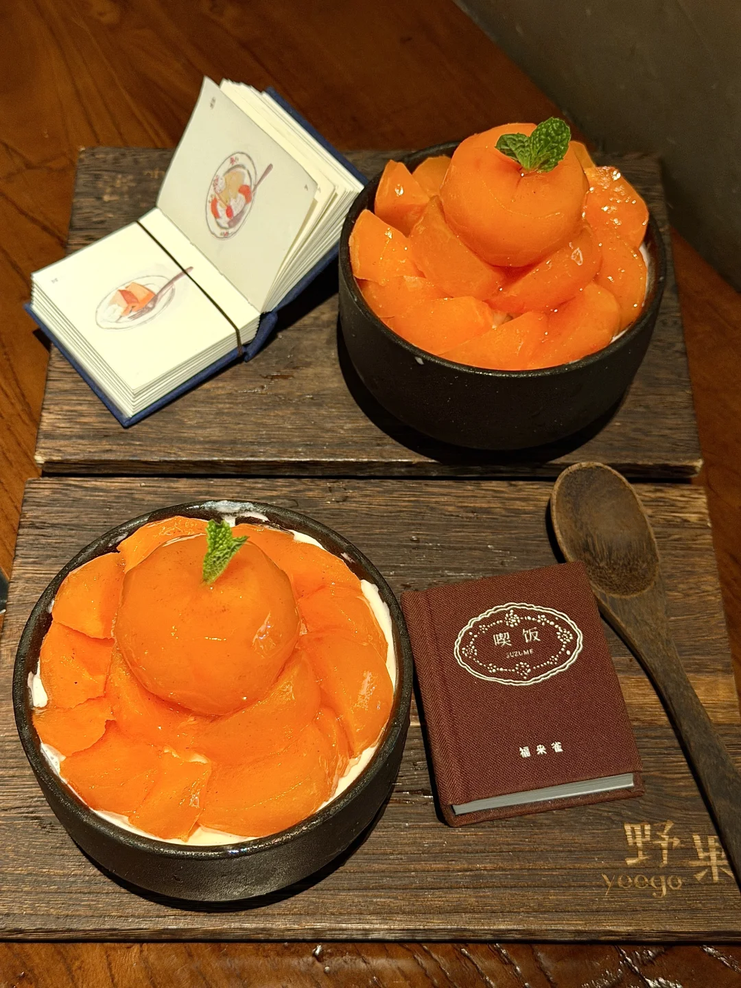 不夸张!它在长沙没有对手。。。。 流心柿子冰!!冰凉软糯!真的好吃! 每次来都会点野果的甜品吃!除了柿子冰还有其他的热菜也很好吃!招牌的铜锅油焖鸡可见的品质好,还有黑松露肉酱面、红三剁肉酱饭……也好下饭!百吃不腻🤤 最爱的还是各种漂亮小甜甜,草莓椰子冰淇淋、芭乐椰子冰淇淋冰凉清爽😭好看又好吃