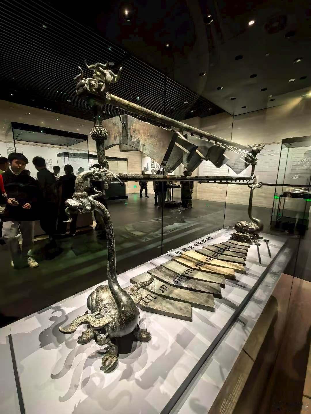 湖北省博物馆,现场零距离瞻观国宝“曾侯乙编钟”。“曾侯乙编钟”与其一起被发掘其他乐队器乐,可谓“金声玉振”。乃中国最早、最精美、最精妙的打击乐,比西方打击乐和交响乐团历史久远太多!震撼、精妙、浪漫、自信、先进、科学……这是中国人才有的顶级奢侈品!