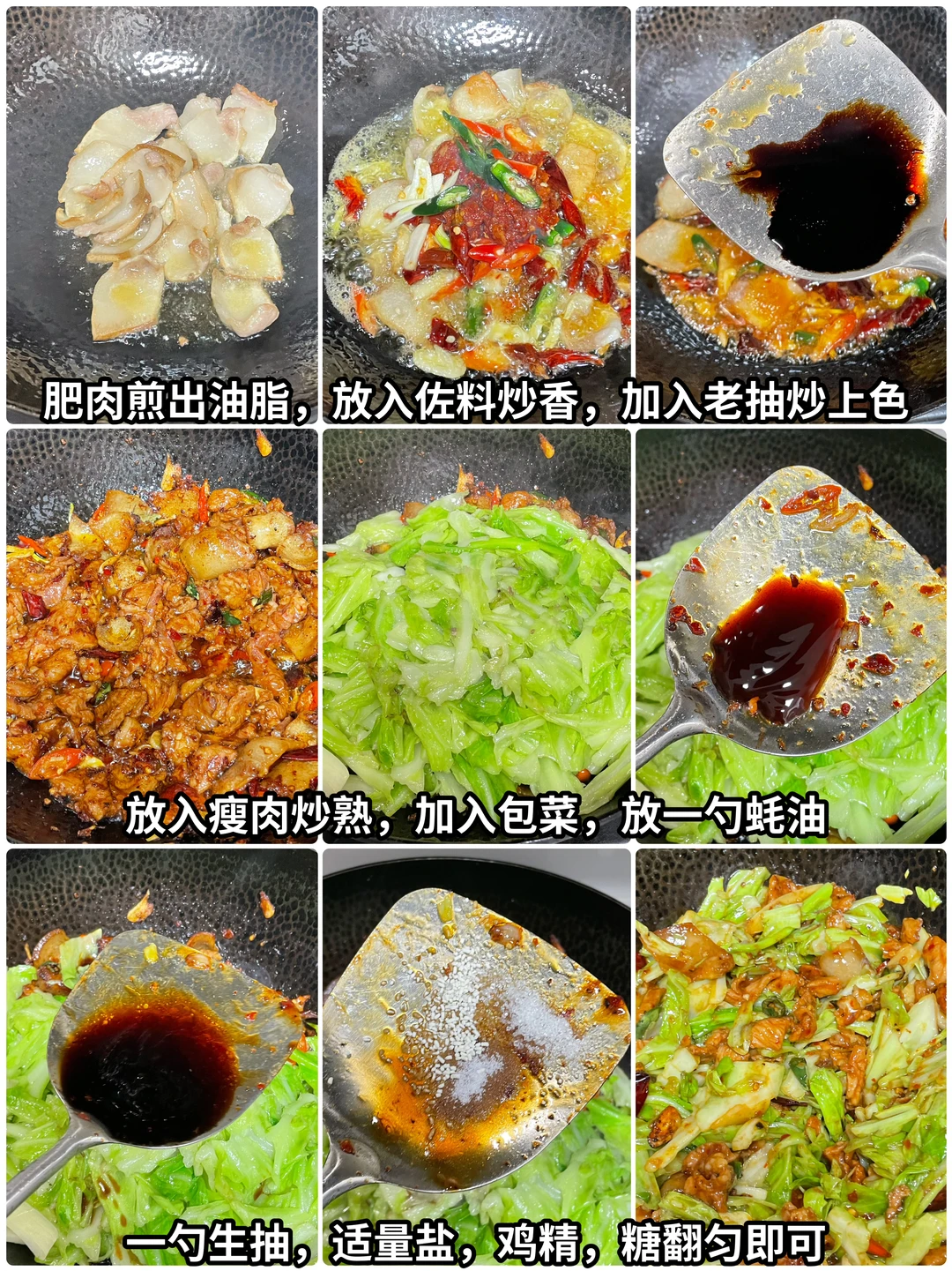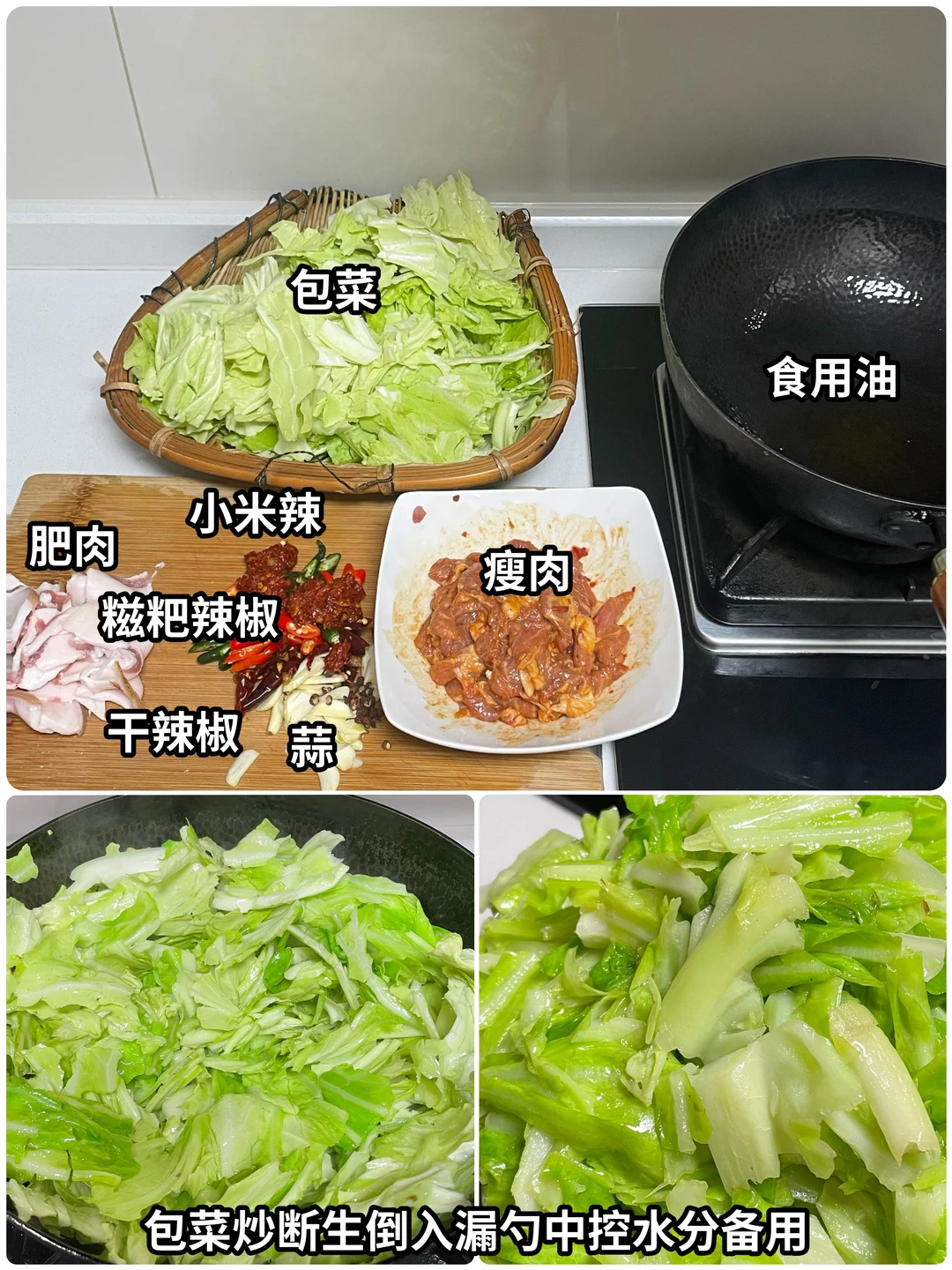 姐妹们,今天给大家出一个包菜炒肉,这个包菜炒肉,肥肉肉香,瘦肉嫩,在加糍粑辣椒的辣味,真的巨下饭,喜欢的姐妹可以尝试着做一下 🌶️食材:梅花肉,包菜 👩‍🍳做法: 1⃣️梅花肉,肥肉切片,瘦肉切片,放生抽,老抽,豆瓣,淀粉好胡椒粉抓匀腌制10分钟备用。 2⃣️包菜拆小块备用。切一些小米辣,干辣椒,蒜,再来勺糍粑辣椒。 3⃣️少油,油热,包菜炒断生倒入漏勺中控出水分备用。 4⃣️再起锅,油热将肥肉煸出油脂,放入小米辣蒜糍粑辣椒炒香,再加一点老抽炒上色,放入瘦肉炒熟。放入包菜,放一勺蚝油,一勺生抽,适量的盐,糖,鸡精翻匀即可出锅。 这样做出来的包菜炒肉真的下饭,喜欢的姐妹可以试试